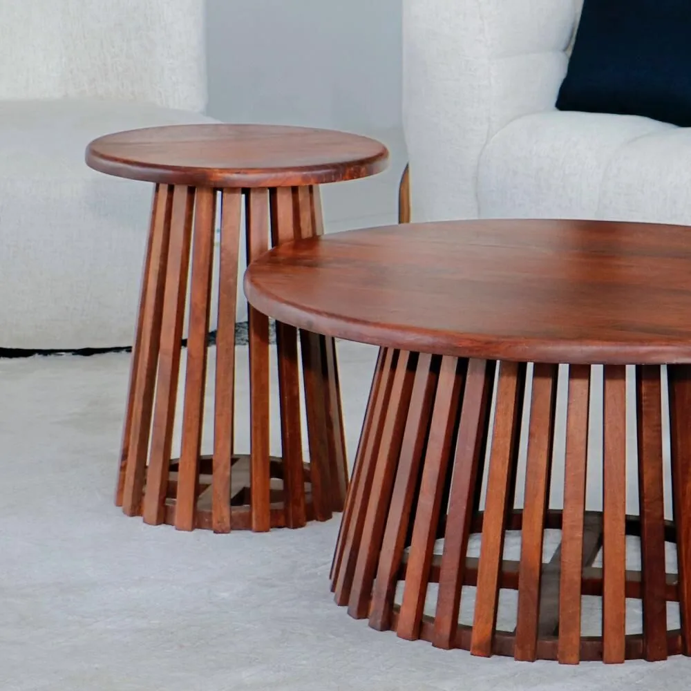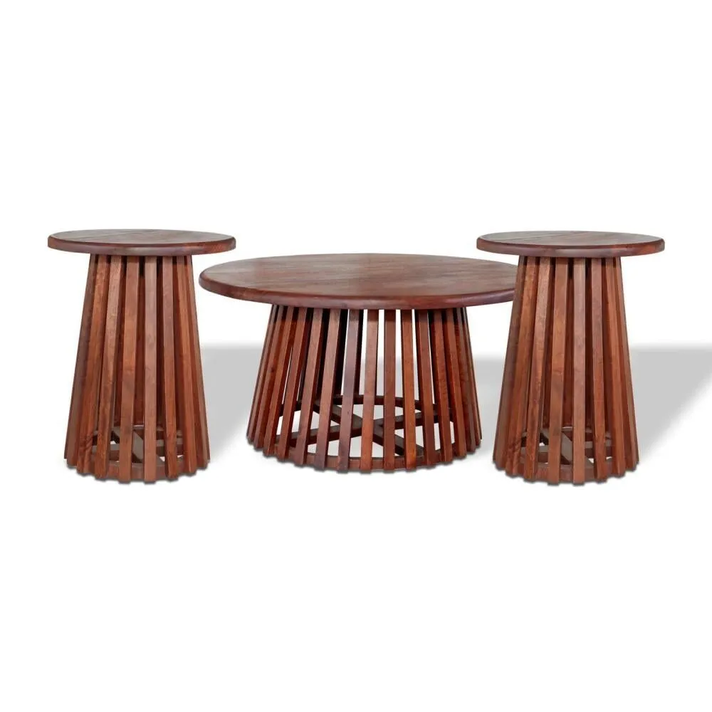 طقم طاولات 3 قطع خشب طبيعي هندي