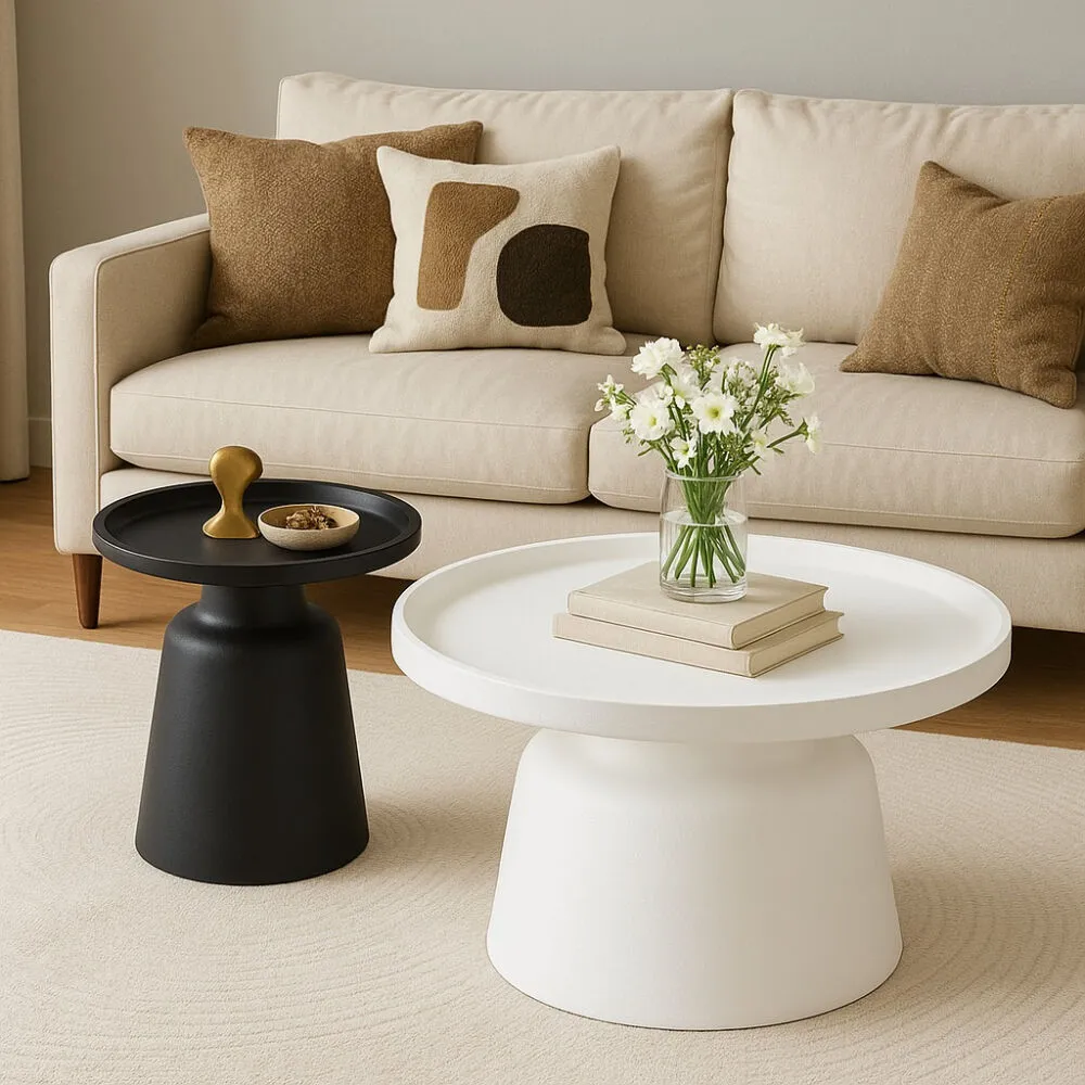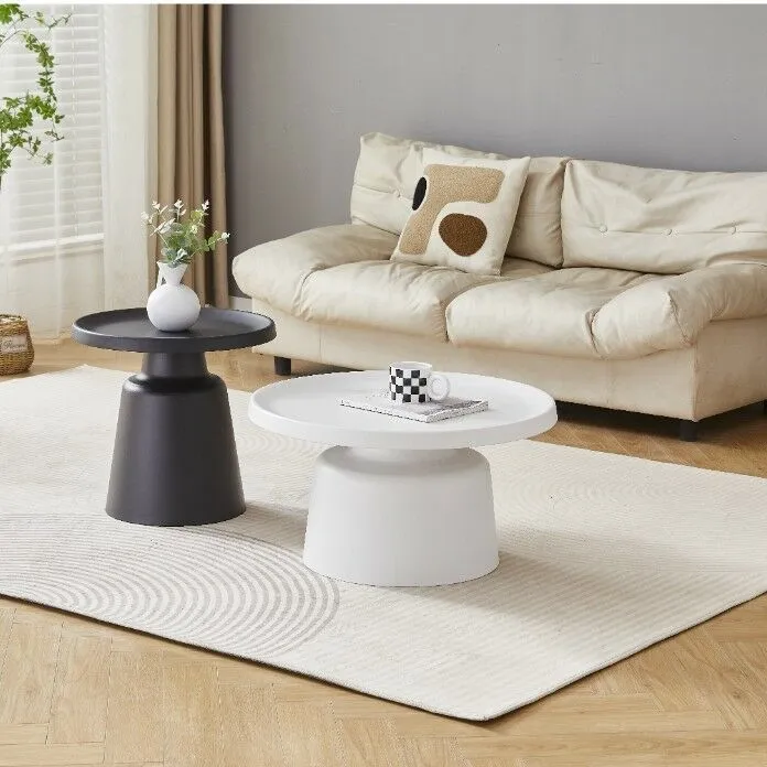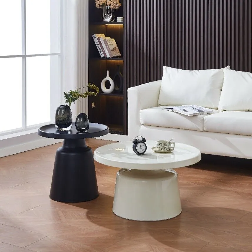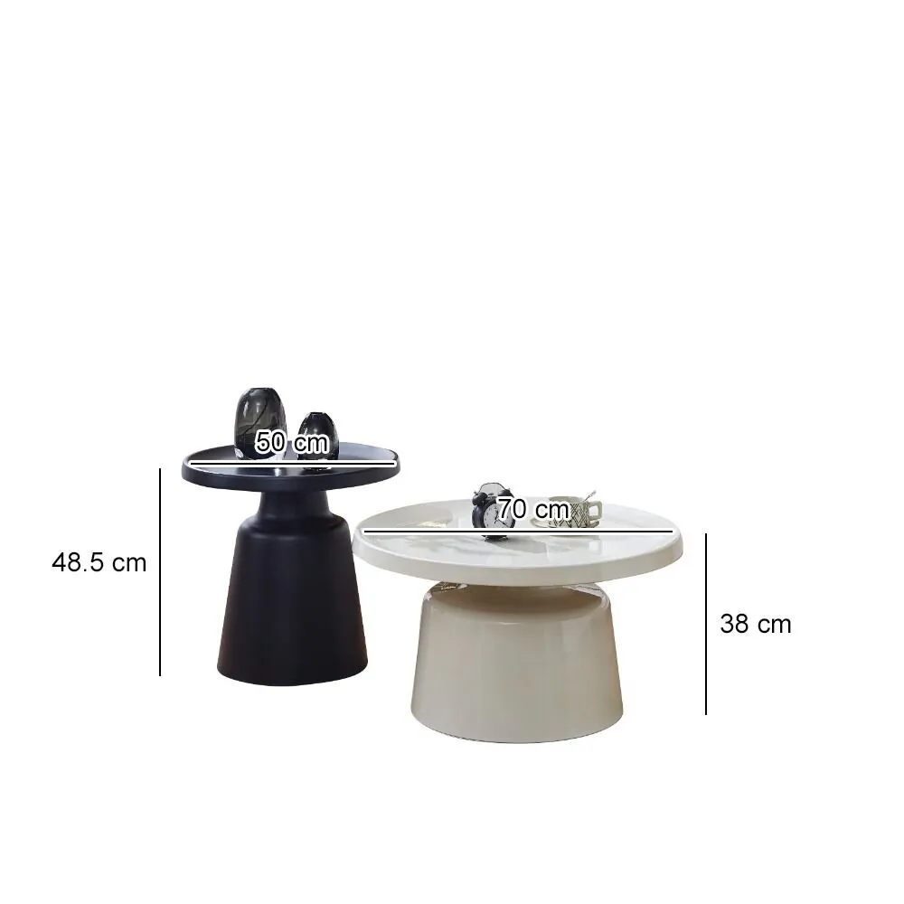 طاولة القهوة : القطر 70 - الارتفاع 38 سم الطاولة الجانبية : القطر 50 - الارتفاع 48.5 سم |