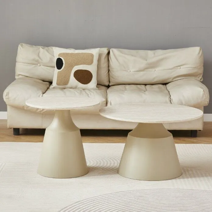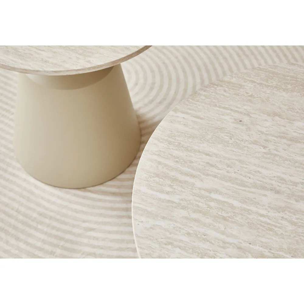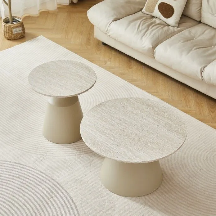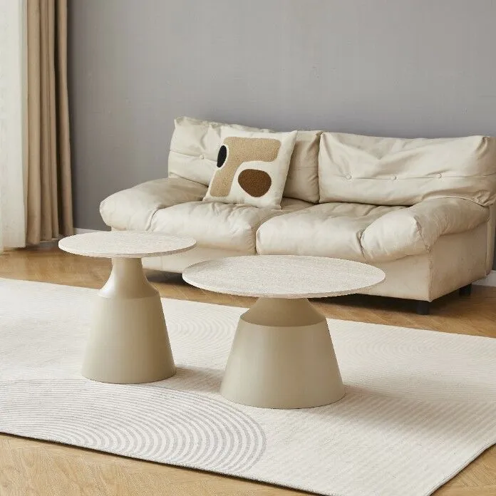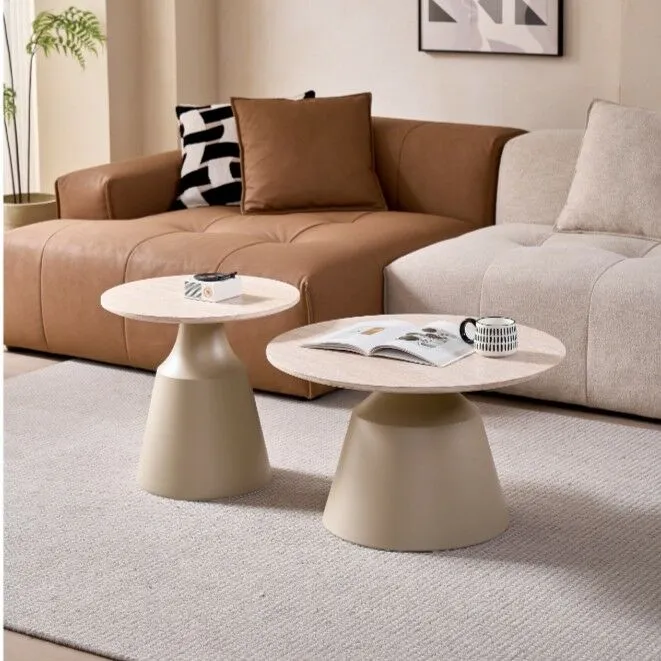طاولة القهوة: القطر 70 - الارتفاع 42.8 الطاولة الجانبية: القطر 50 - الارتفاع 48.5 |