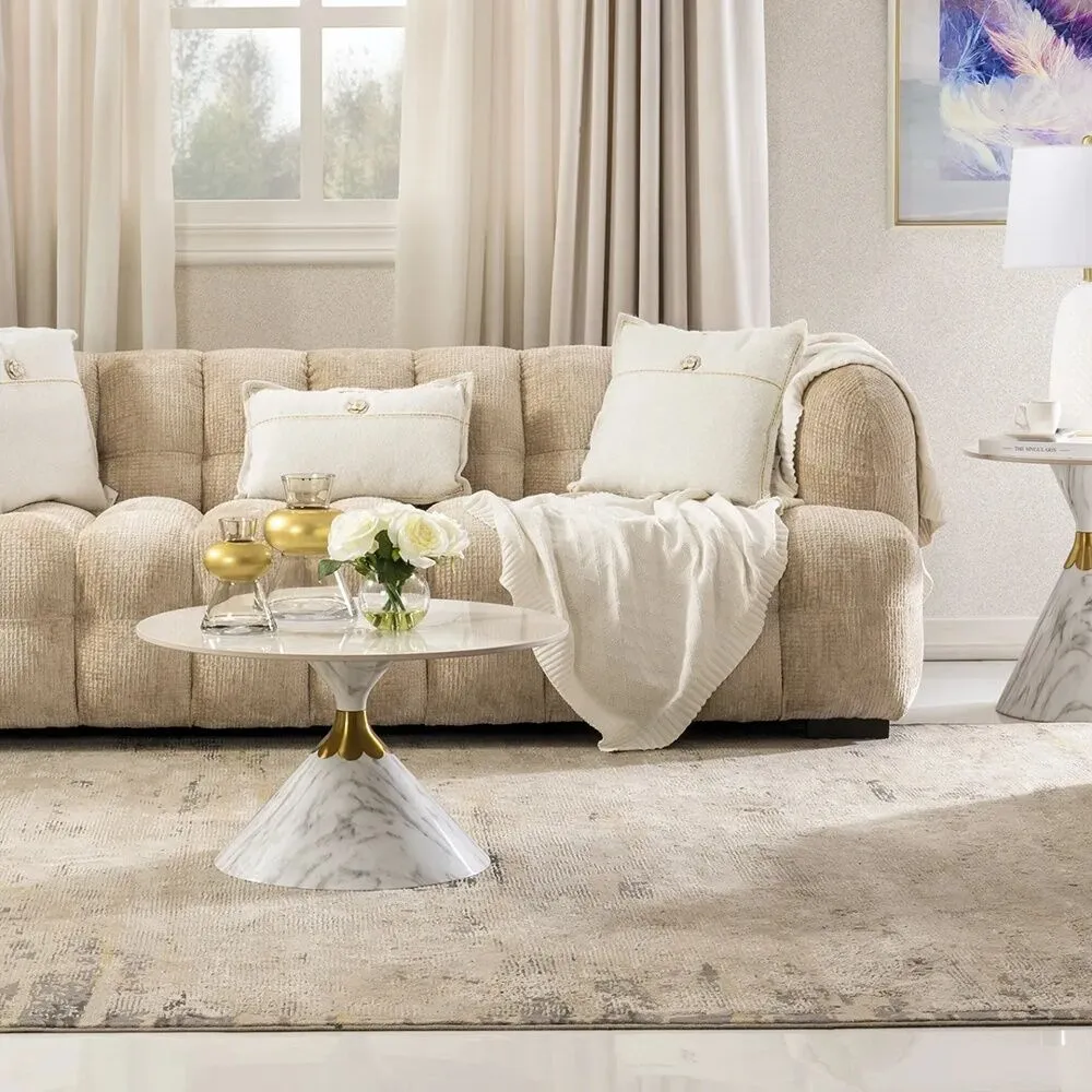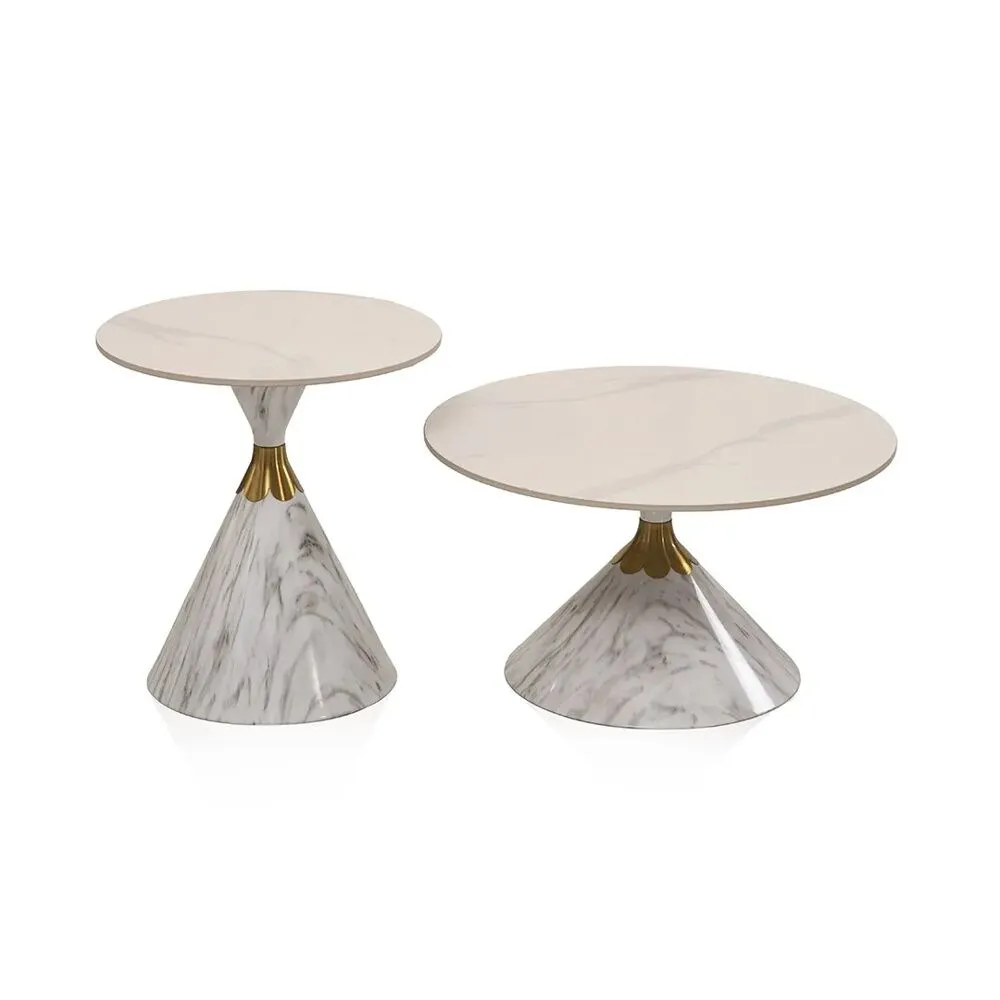 طاولة قهوة * قطر 70 * ارتفاع 41 سم طاولة جانبيه * قطر 50 * ارتفاع 50 سم |