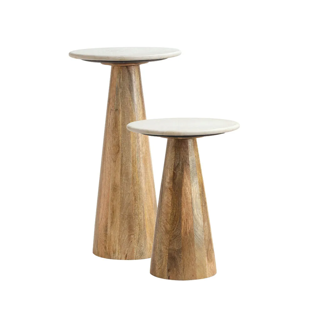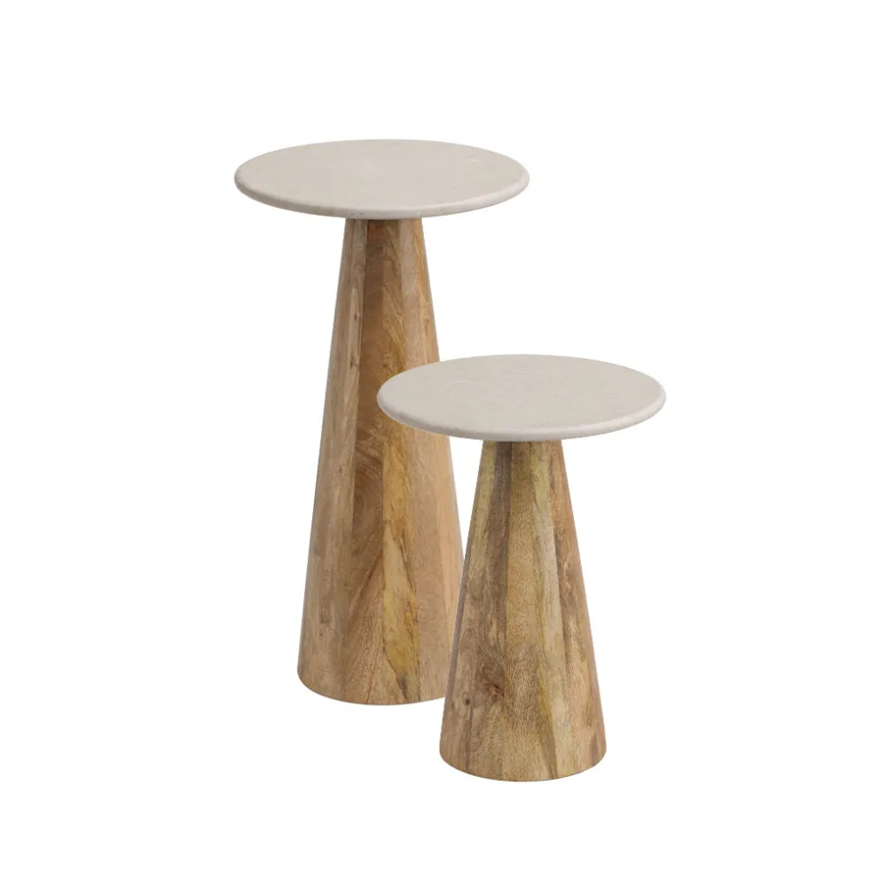 طقم طاولتين جانبية بيرل رخام - كريمي وبني