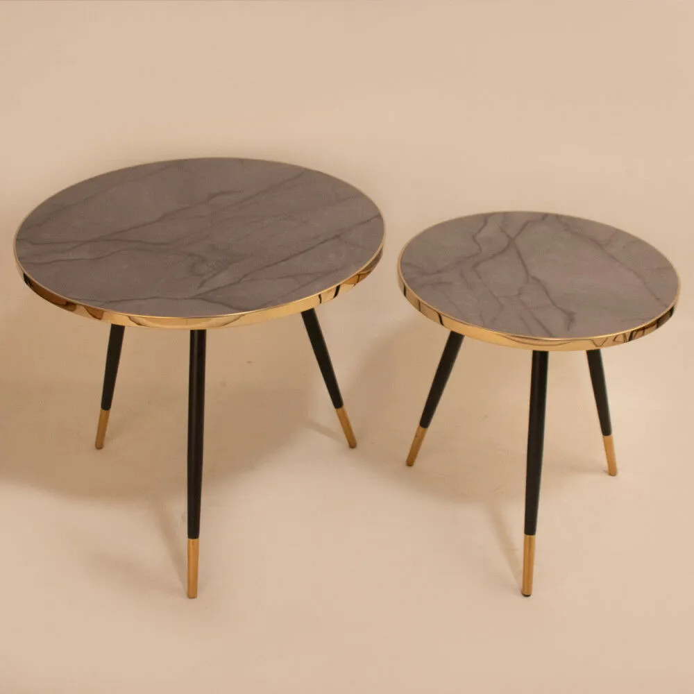 طقم طاولتين مستديرة سطح رمادي من الخشب والارجل حديد