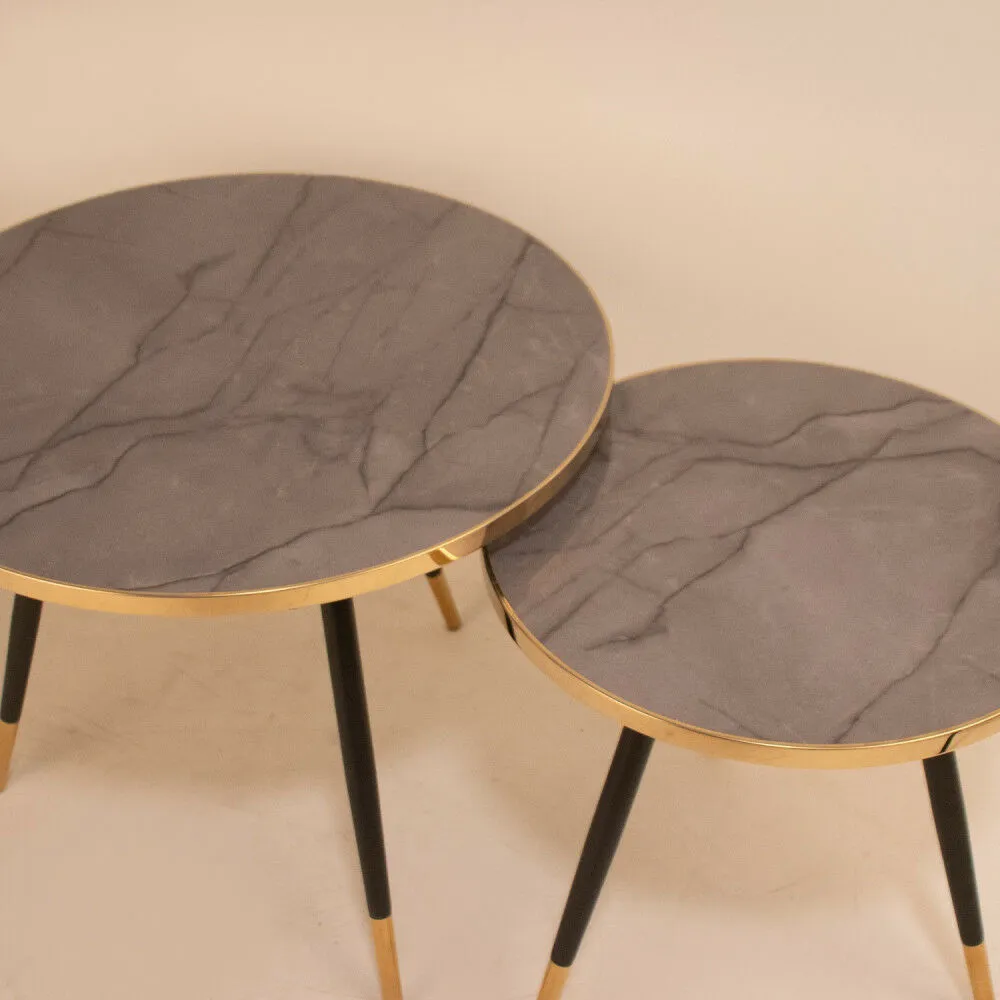 أنت تراجع:طقم طاولتين مستديرة سطح رمادي من الخشب والارجل حديد
