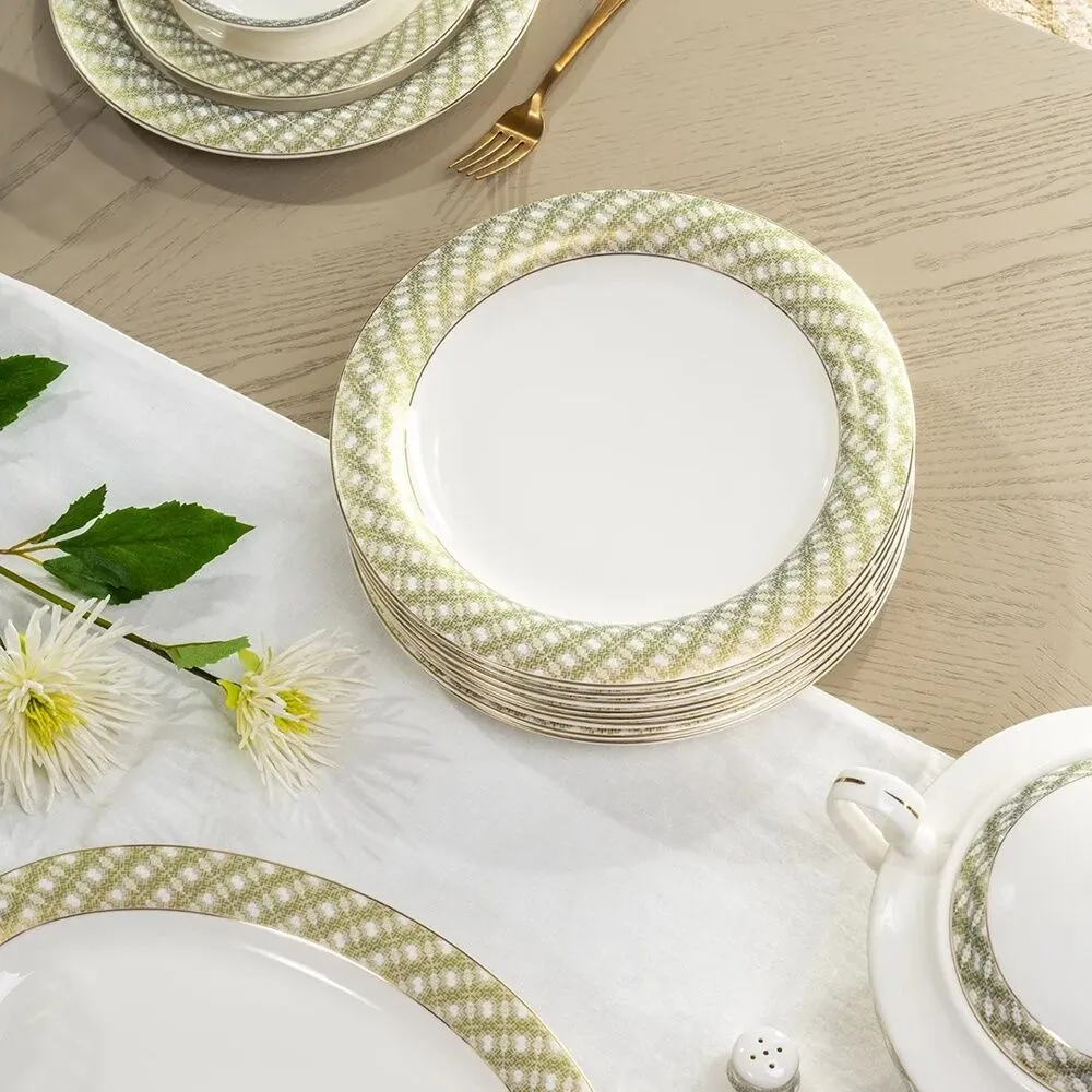 صحن عشاء 12 قطعة زبدية للشوربة 12 قطعة صحن للمقبلات أو الحلويات 12 قطعة زبدية 12 قطعة صحن للتقديم 2 قطعة صحن للتقديم 1 قطعة زبدية لتقديم السلطات أو الفواكه 1 قطعة غطاء للإناء 1 قطعة ملاحة وأوعية زيت وخل 2 قطعة |