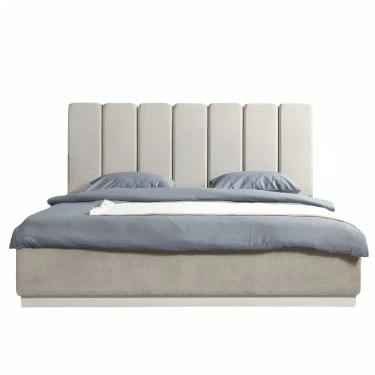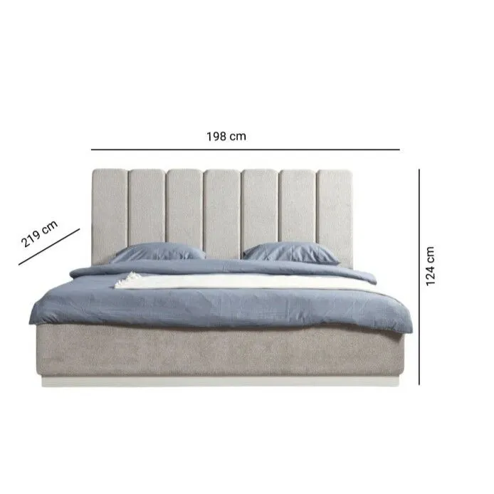 تضفي مقاسات السرير السخية جاذبية فورية إلى غرفة النوم حيث يوفر مساحة واسعة للراحة الكاملة والاسترخاء. يتميز هذا السرير بتصميمه الانيق الذي يجمع بين الجمال بالتصميم وفخامة قماش البوكليه عالي الجودة تجربة نوم لا مثيل لها.