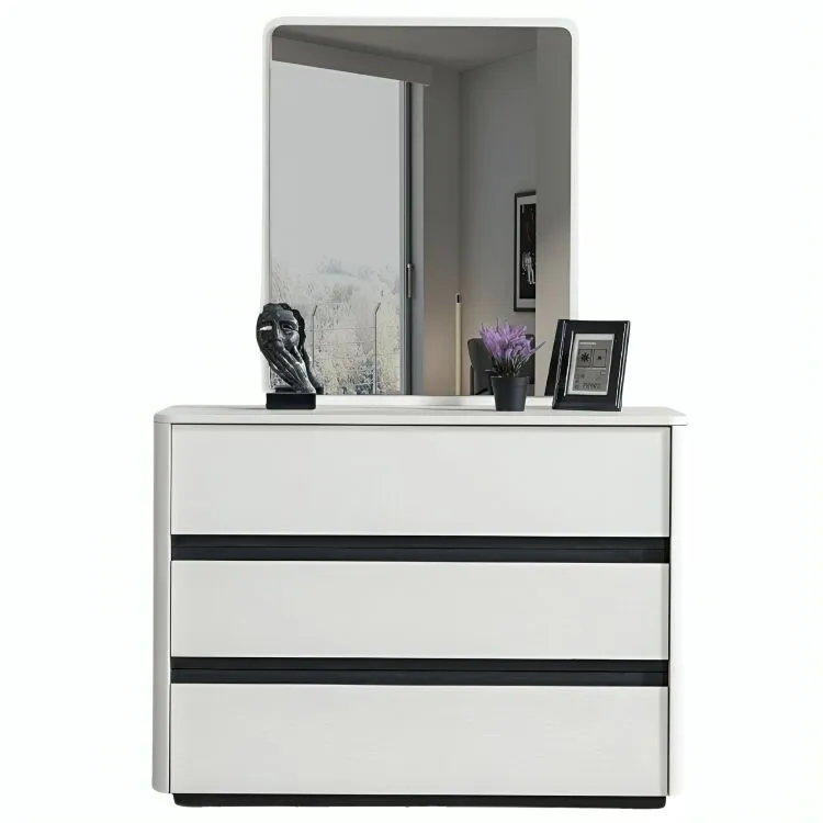 يمثل الكومودينو وطاولة التزيين من خشب MDF توازنًا مثاليًا بين الجمال والوظائف. تمتاز الكومودينو بتصميمها الأنيق والوظيفي، حيث توفر مساحة تخزين إضافية، بينما تضفي طاولة التزيين لمسة من الجمال والأناقة لأي غرفة بتصميمها الراقي والعملي. تضيف المرآة لمسة نهائية من الأناقة مما يجعلها خيارًا مثاليًا للمكان المثالي لتجهيز الذات وإضفاء لمسة أخيرة من الفخامة على الديكور الداخلي للغرفة