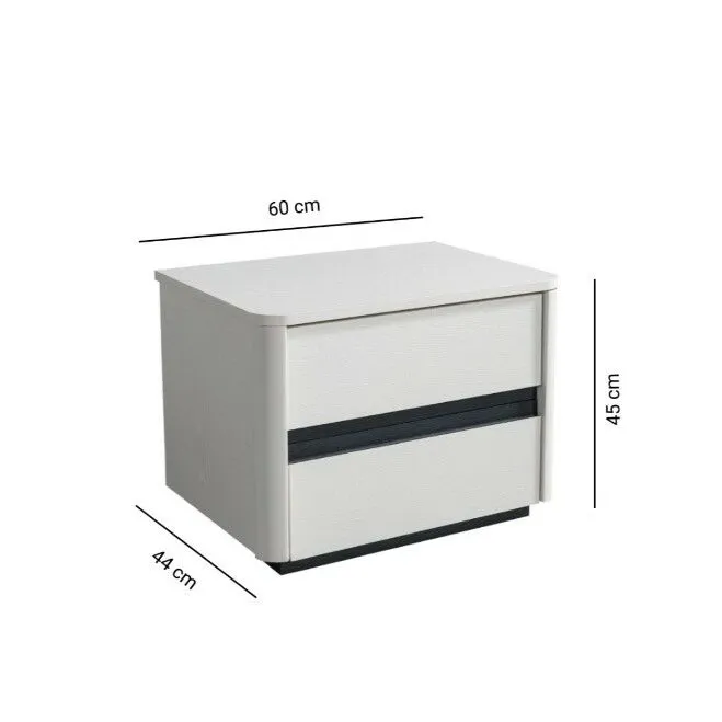 أبعاد المنتج مقاس السرير العمق 219 - العرض 198 - الارتفاع 124 - مقاس الكومودينو العمق 44 - العرض 60 - الارتفاع 45 - مقاس طاولة التزيين العمق 44 - العرض 115 - الارتفاع 86