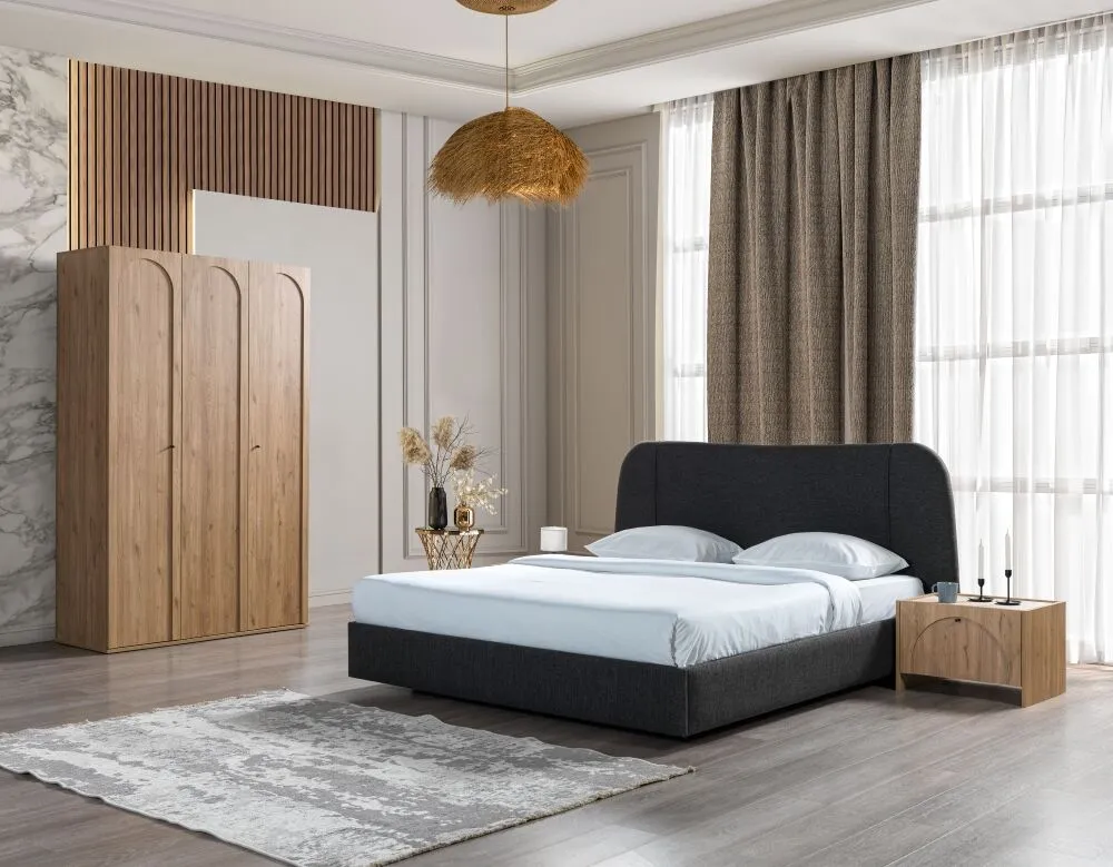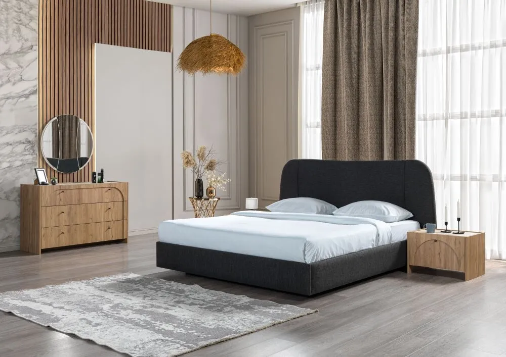 | يتضمن الطقم | 1 سرير 1 وحدة ادراج 1 مرآة 2 كومودينو فقط |