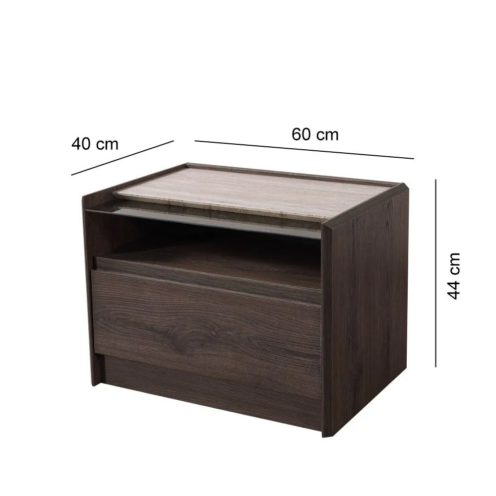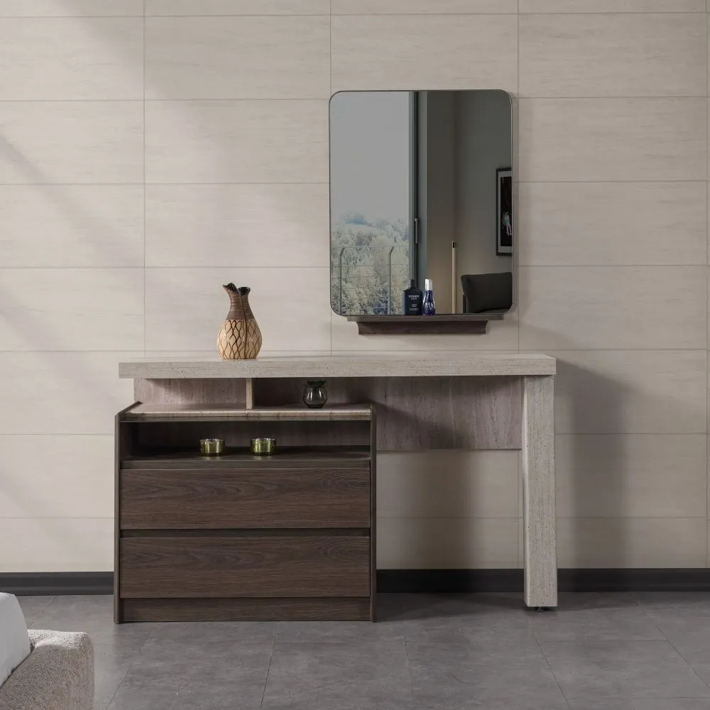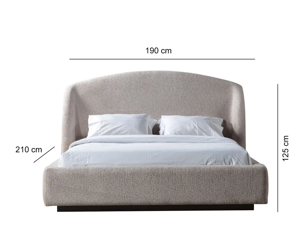 سرير : عرض 190- عمق 210 - ارتفاع 125 سم كومودينو : عرض 60 - عمق 40 - ارتفاع 44 سم طاولة تزيين : عرض 116 - عمق 40 - ارتفاع 82 سم مرآة : عرض 64.8 - ارتفاع 86.8 سم |