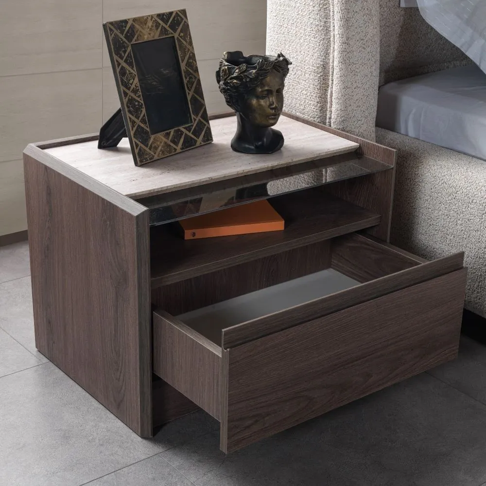 | يتضمن الطقم | 1 سرير كينغ - 1 تسريحة - 1 مرآة - 2 كومودينو |