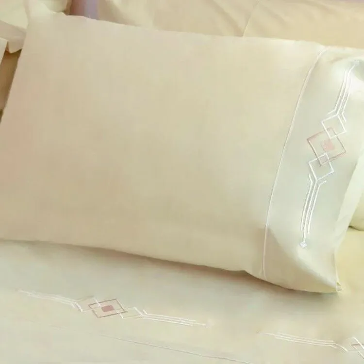 2 غطاء وسادة مطرز 2 غطاء وسادة ساده 1 شرشف سرير مطرز 1 ملاية سرير |