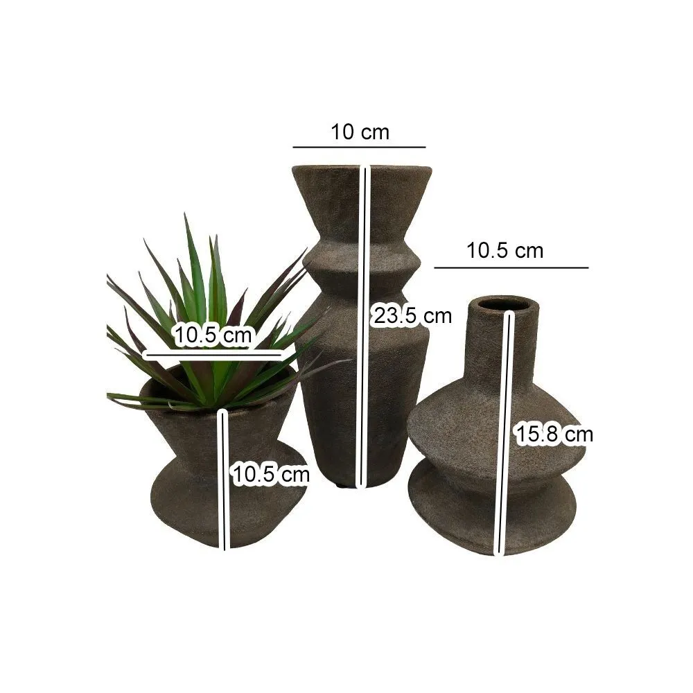 ابعاد الفازة الكبيرة القطر 10 - الارتفاع 23.5 سم ابعاد الفازة الوسط القطر 10.5 - الارتفاع 15.8 سم ابعاد الفازة الصغيرة القطر 10.5 - الارتفاع 10.5 سم |
