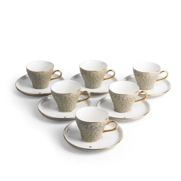 | يتضمن الطقم | طقم قهوة تركية بتصميم فاخر 6 فناجين و 6 صحون |