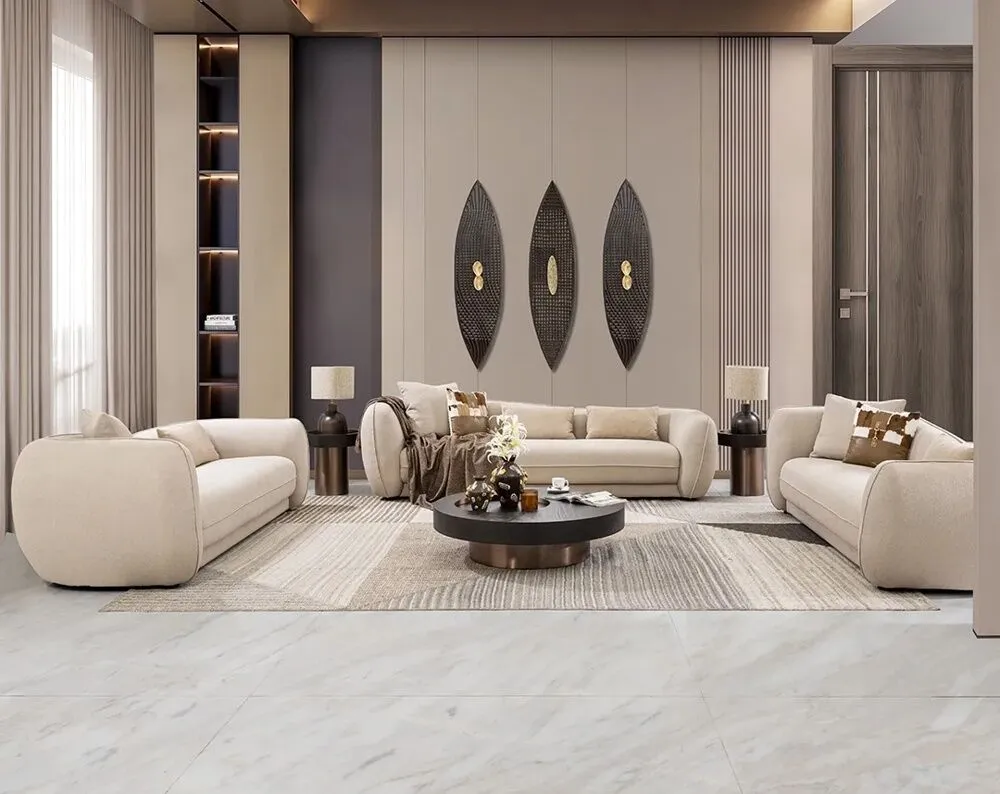 | يتضمن الطقم | كنبة اربعة مقاعد بيدين 1 قطعة - كنبة ثلاثة مقاعد بأيدي 2 قطعة - وسادة مستطيلة للديكور 4 قطعة - وسادة مستطيلة للديكور 3 قطعة |