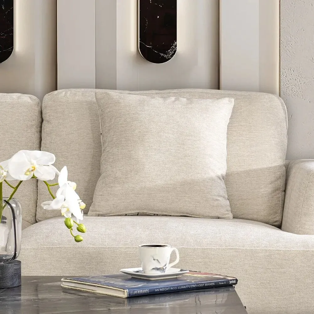 ابعاد الكنبة الثلاثية عرض 214 - عمق 90 - ارتفاع 89 سم ابعاد الكنبة الثنائية عرض 164 - عمق 90 - ارتفاع 89 سم ابعاد وسائد الديكور عرض 45 - ارتفاع 45 سم |