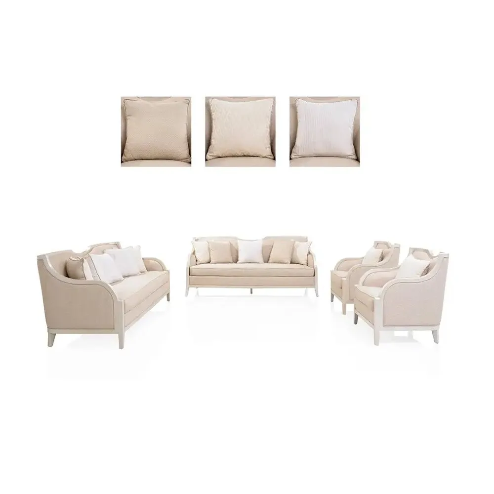 يتضمن الطقم كنبة ثلاثة مقاعد بأيدي 2 قطعة - كنبة مقعد واحد 2 قطعة - وسادة مربعة للديكور 12 قطعة