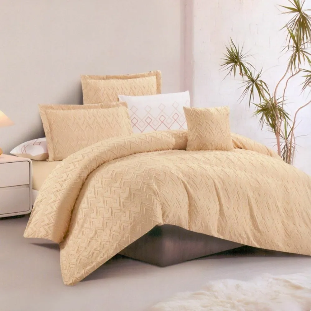 طقم لحاف أنيق يضفي لمسة من الفخامة والراحة على غرفة نومك، بتصميم يعكس الذوق الرفيع ويلائم مختلف أنماط الديكور. يمنحك إحساسًا دافئًا وهادئًا لتستمتع بنوم هانئ كل ليلة.