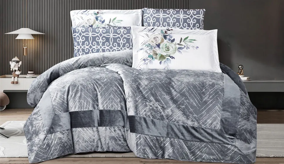 أنت تراجع:طقم لحاف مفرد فيلروز مخمل 4 قطع - رمادي