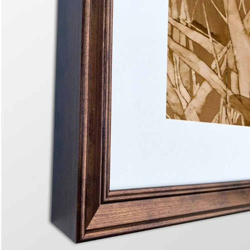 اللون البيج الغامق كلون أساسي مع ألوان ثانوية متعددة داخل اللوحة، متناغمة مع الإطار البني والطبقة العاجية لإحساس دافئ ومتوازن.التصميم: