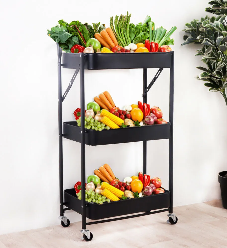 عربة تخزين حديد 3 دور بيد قابلة للطي - أسود عربة تخزين متعددة الأدوار بتصميم عصري موفر في المساحة تشكل إضافة عملية إلى ديكورمنزلك. العربة متعددة الاستخدامات يمكنك استخدامها لتقديم الخدمات والضيافات المختلفة أو كوحدة تخزين في المطبخ لتوضيب الخضار والبرطمانات والأدوات المختلفة أو في الحمام لتوضيب مواد وأدوات التنظيف كما يمكنك استخدامها في غرف الأطفال لتوضيب الألعاب بشكل منظم وأنيق. العربة مزودة بعجلات تسهل نقلها وتحريكها.