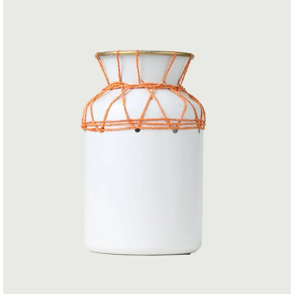مزهرية من البورسلان الأخاذ مع خيوط برتقالية أنيقة لون أبيض - أنيقة وبتصميم عصري وبألوان هادئة مميزة تضفي على الديكور جمال مميز ولمسة فريدة يمكنك استخدامها بمفردها كاكسسوار منزلي أو إضافة الزهور إليها لتزيدها جمال. مصنوعة من البورسلان عالي الجودة ومطلية بألوان ثابتة مع الزمن ومقاومة للعوامل الجوية المختلفة.