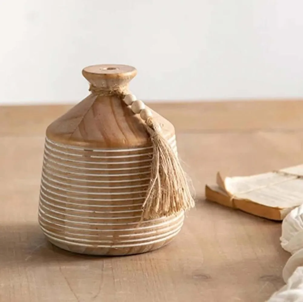 أضف لمسة فاخرة وطبيعية إلى ديكور منزلك مع فازة فانا الخشبية الأنيقة المصنوعة بدقة عالية من أجود أنواع الخشب. تصميمها العصري والبسيط يناسب جميع المساحات مثل غرفة المعيشة، المكاتب، أو طاولات الطعام. مثالية لتزيينها بالزهور الجافة أو الورود الصناعية لإبراز جمال المكان. تتميز بمظهرها الدافئ الذي يضفي إحساسًا بالراحة والرقي على أي غرفة. فازة فانا خيار رائع لعشاق التفاصيل الراقية والديكورات الحديثة، كما أنها هدية مثالية للمناسبات الخاصة مثل الانتقال لمنزل جديد أو حفلات التخرج