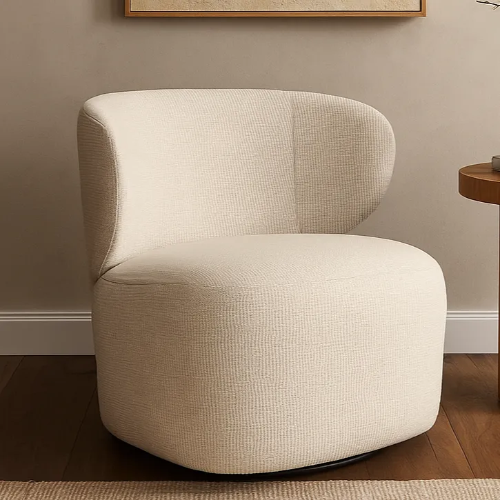 باللون البيج الذي يوحي بالدفء، الأناقة، والراحة، ويُعتبر من أكثر الألوان المحايدة نعومةً ومرونة في التنسيق. حيث يتميز بتصميم عصري وانسيابي، بقاعدة متينة ومسند ظهر منحنٍ يضفي لمسة من الأناقة والراحة في آنٍ واحد. حجمه متوسط ومناسب للاستخدام في الزوايا الهادئة أو كقطعة ديكور مميزة في غرف المعيشة أو غرف النوم. الخطوط النظيفة والبسيطة في شكله تمنحه مظهراً راقياً ومتناسقاً مع أنماط الديكور الحديثة.