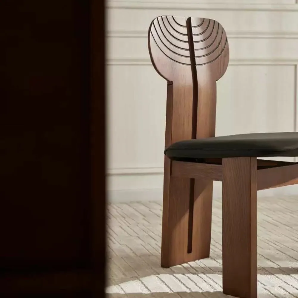 كرسي طعام بتصميم فاخر يشكل اضافة عملية وأنيقة لغرفة الطعام الخاصة بك. تم تصنيعه من أجود الخامات المتينة والمقاومة للعوامل الخارجية ليدوم طويلاً بنفس الكفاءة العالية.مصنوع من الخشب الصلب ومقعد من الجلد ليضمن لك الراحة اثناء الجلوس.