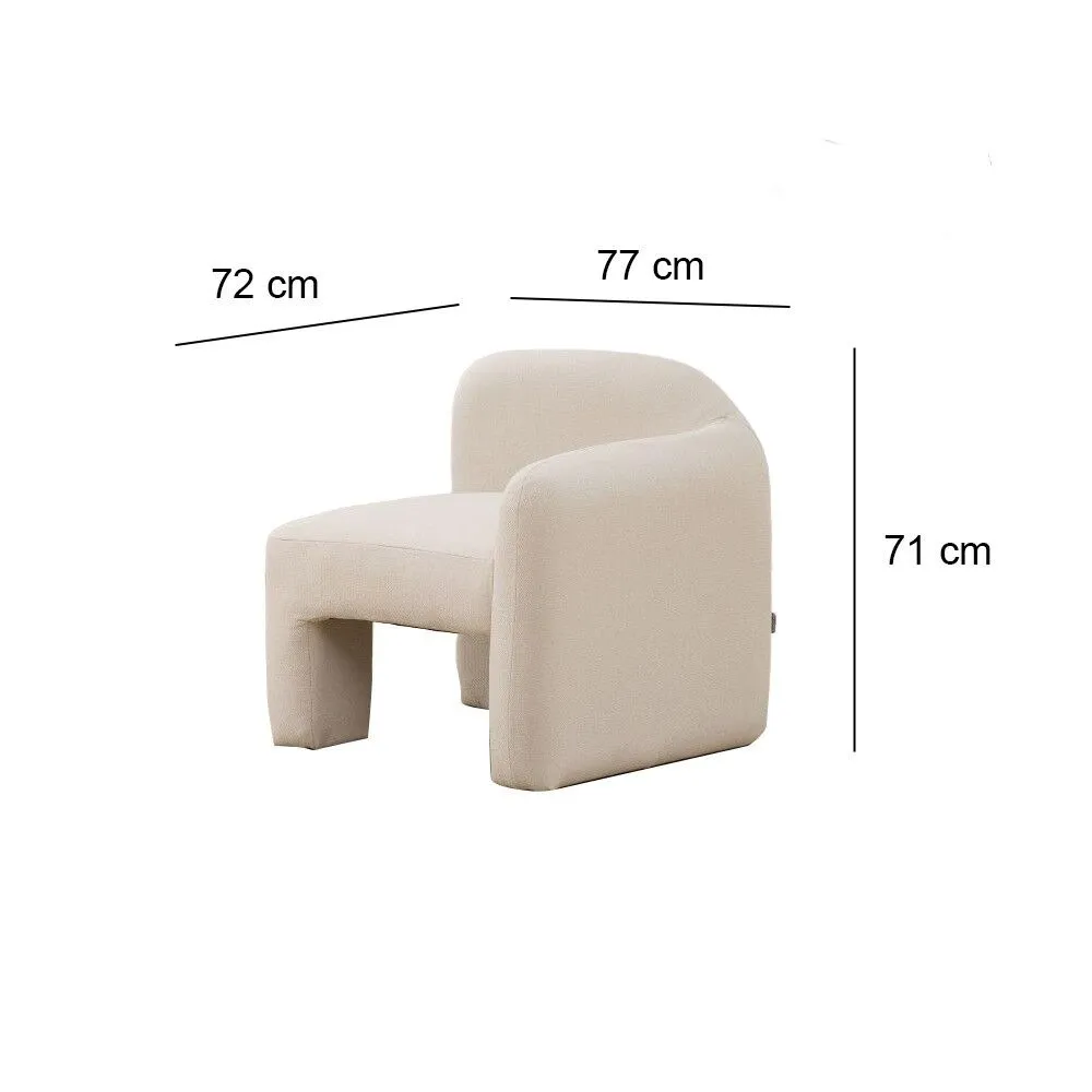 كرسي عصري بتصميم ناعم وانسيابي يضيف لمسة من الرقي والراحة لأي مساحة في المنزل. يأتي بلون بيج فاتح هادئ يمنح المكان أجواءً دافئة ومتناغمة، مع جلسة مريحة وشكل منحني يوفّر دعماً جيداً للجسم. يناسب غرف الجلوس، غرف النوم أو أي زاوية استرخاء بفضل مظهره الأنيق وإحساسه المريح.