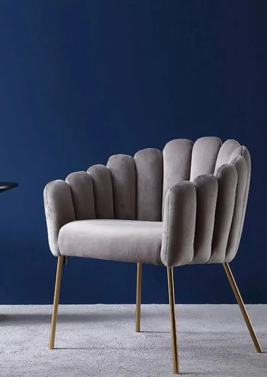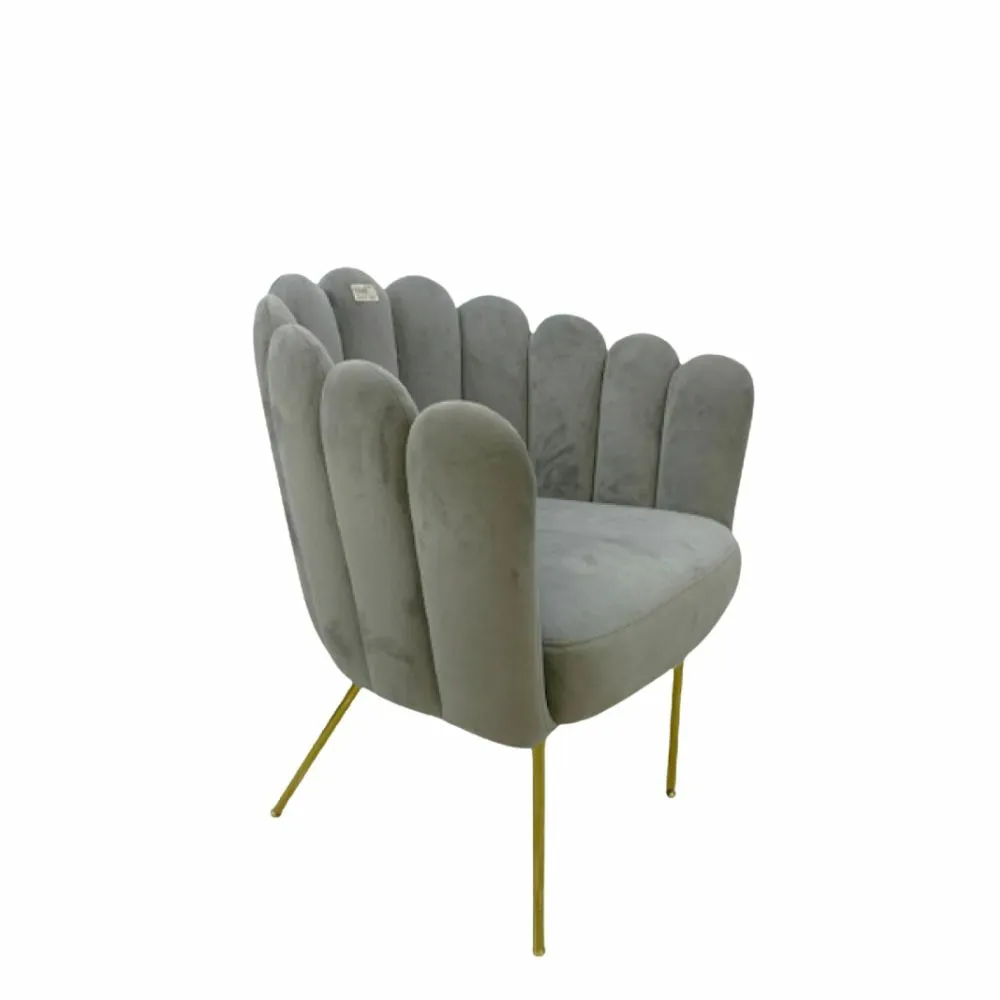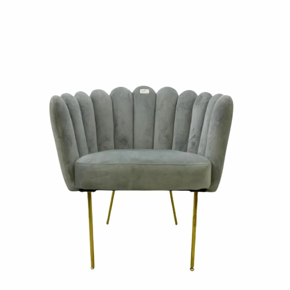 ارتقِ بأناقة مساحتك مع هذا الكرسي المفرد الفاخر، المصمم بظهر مروحي مميز وتنجيد مخملي ناعم يمنحك إحساسًا بالدفء والرقي.