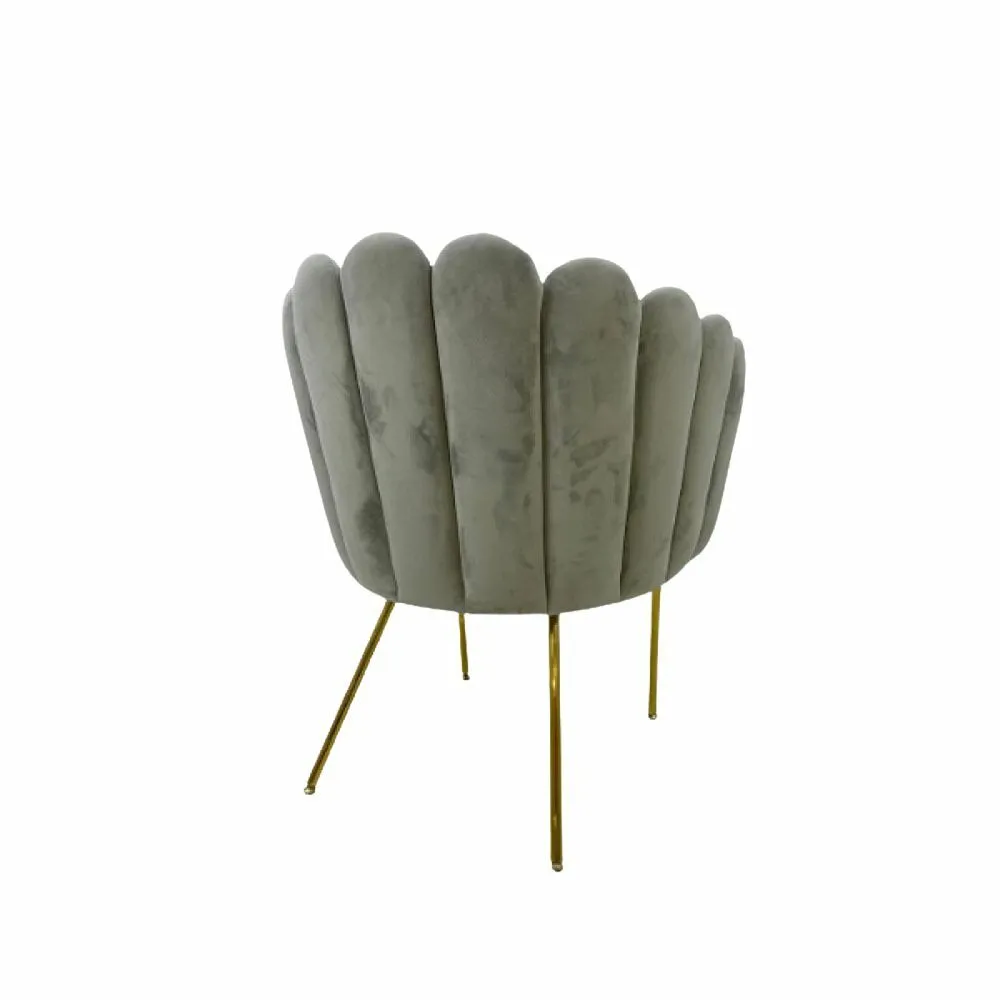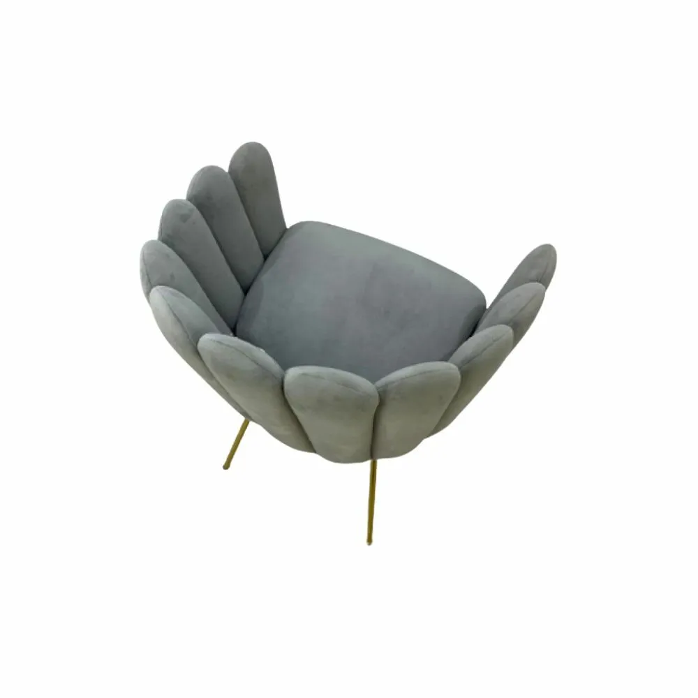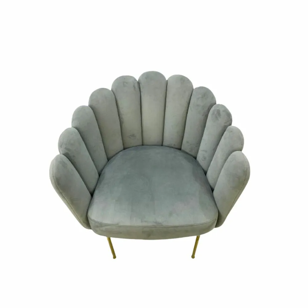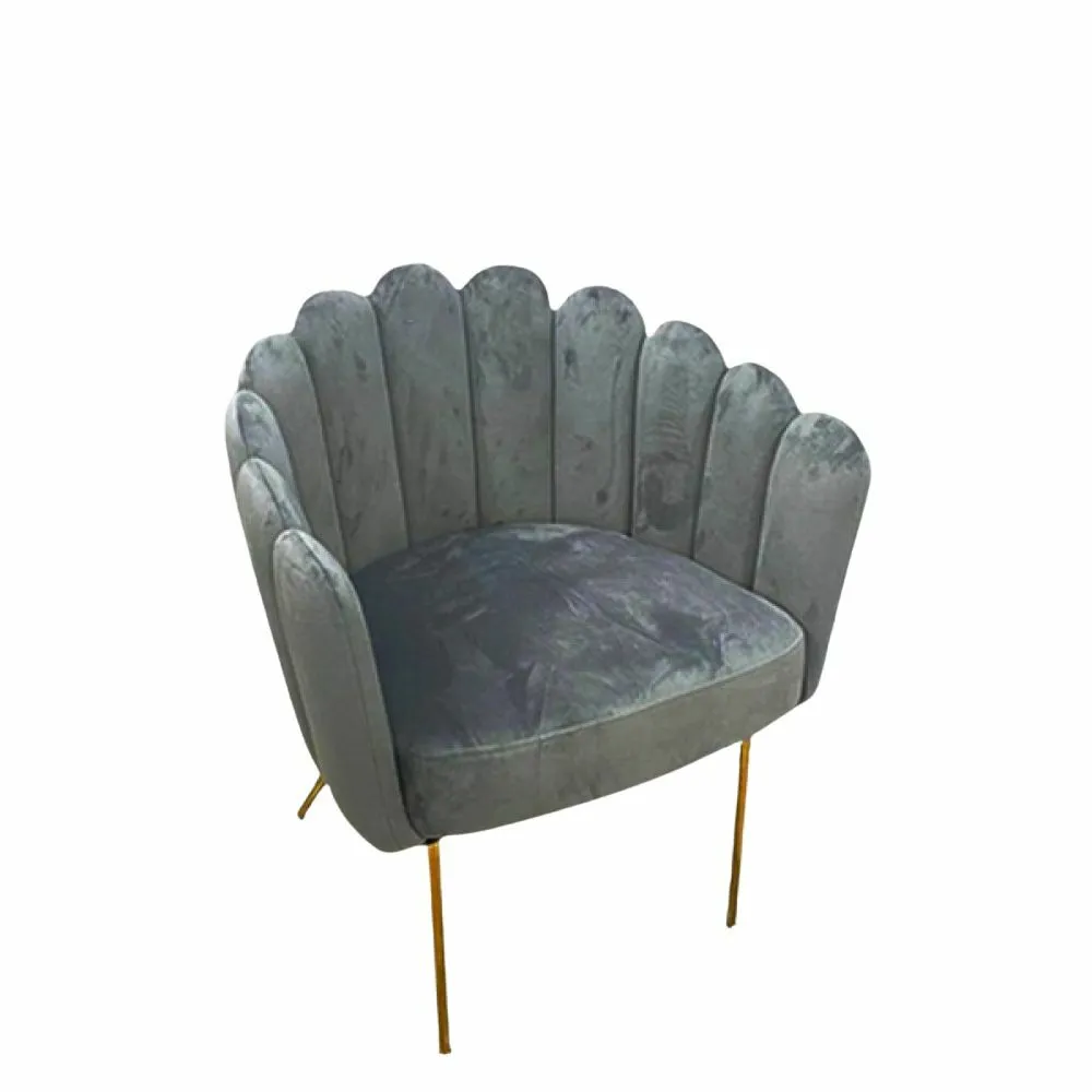 ارتقِ بأناقة مساحتك مع هذا الكرسي المفرد الفاخر، المصمم بظهر مروحي مميز وتنجيد مخملي ناعم يمنحك إحساسًا بالدفء والرقي.