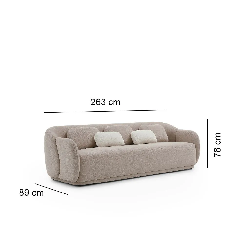 : خمس وسائد – 3 وسادة ديكور كبيرة تعزز من جمالية الكنبة، ووسادتين صغيرتين في الوسط للدعم والديكور.