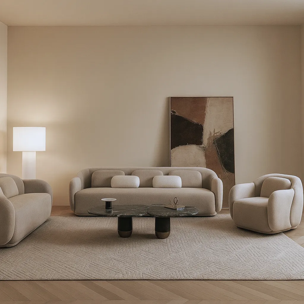 : تصميمها عصري، تعطي إحساس بالراحة والانسيابية، مثالية للمجالس المفتوحة أو الزوايا.الخامات