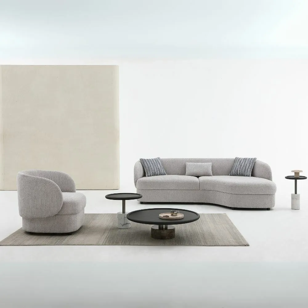: تصميمها منحني وعصري، تعطي إحساس بالراحة والانسيابية، مثالية للمجالس المفتوحة أو الزوايا.