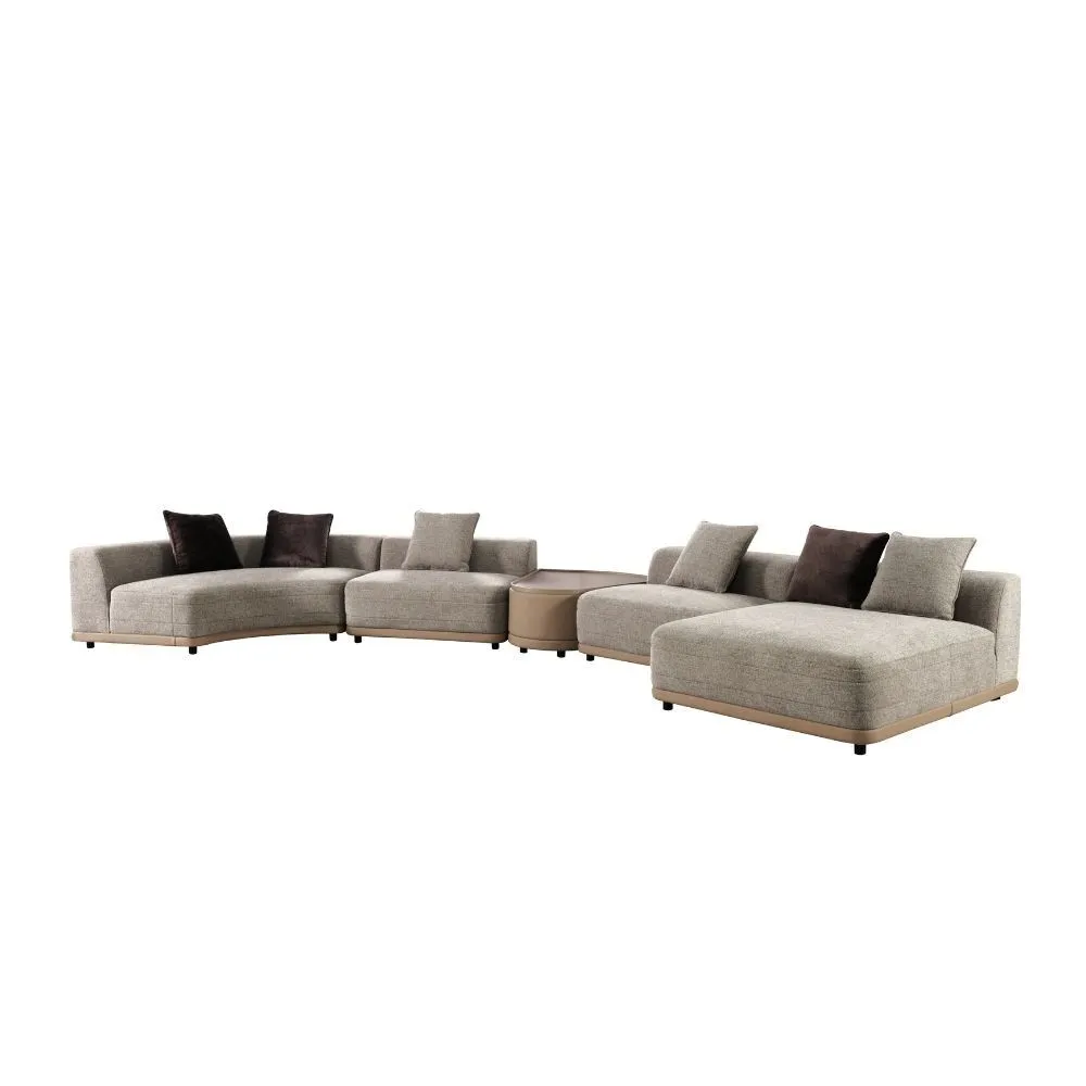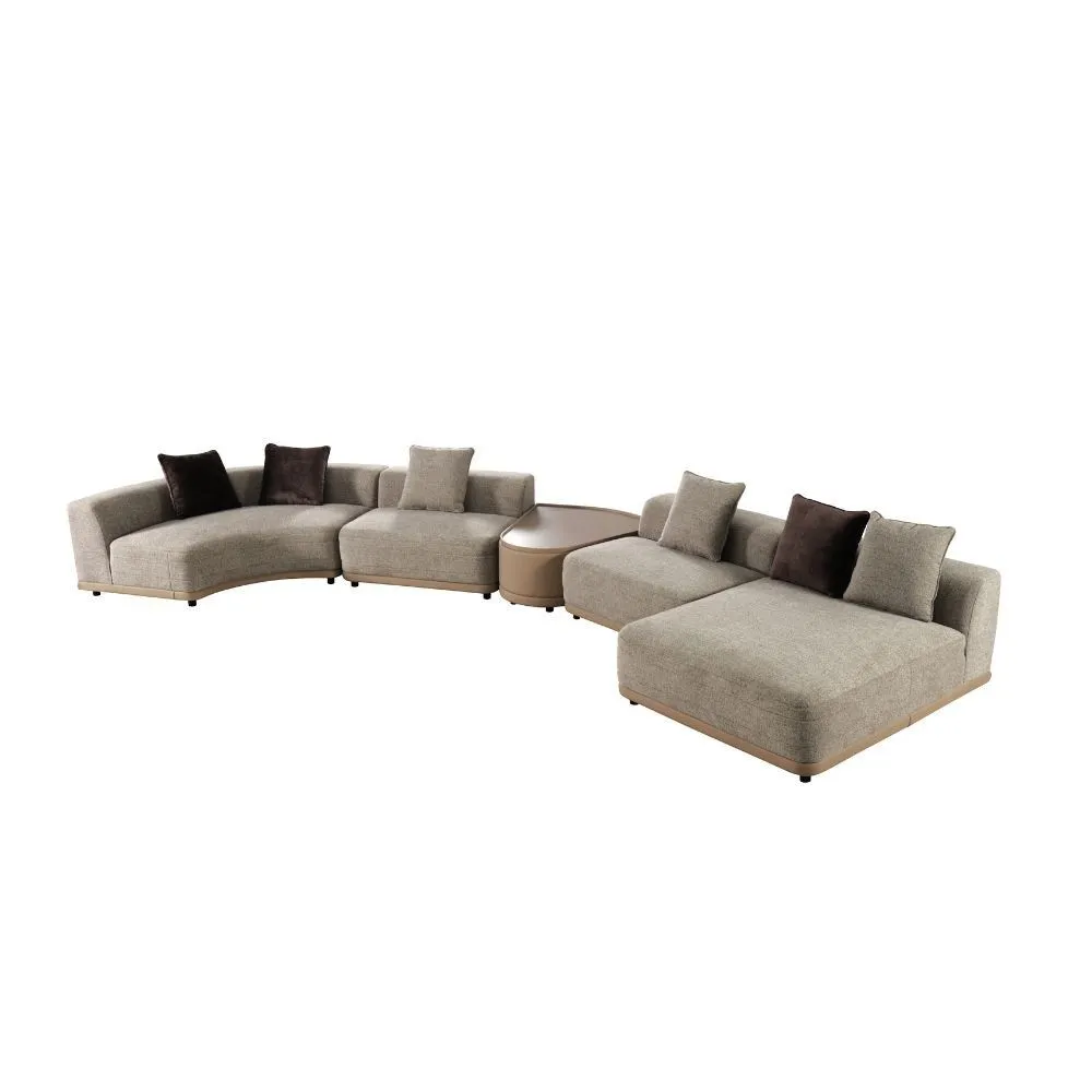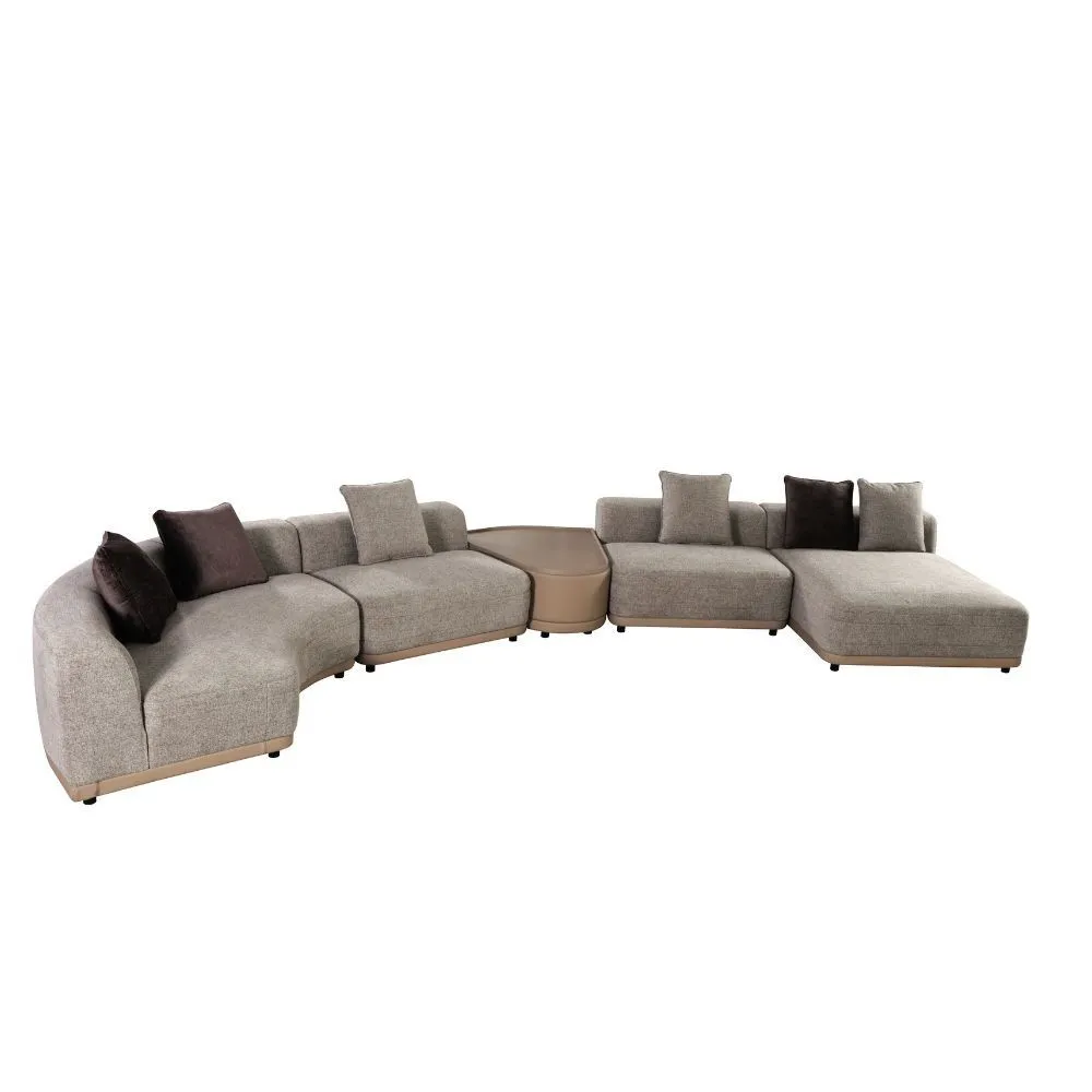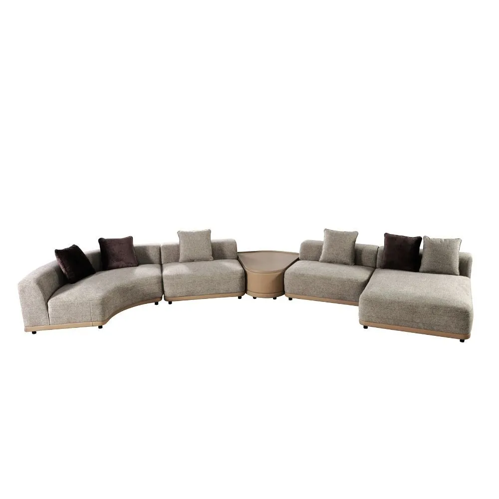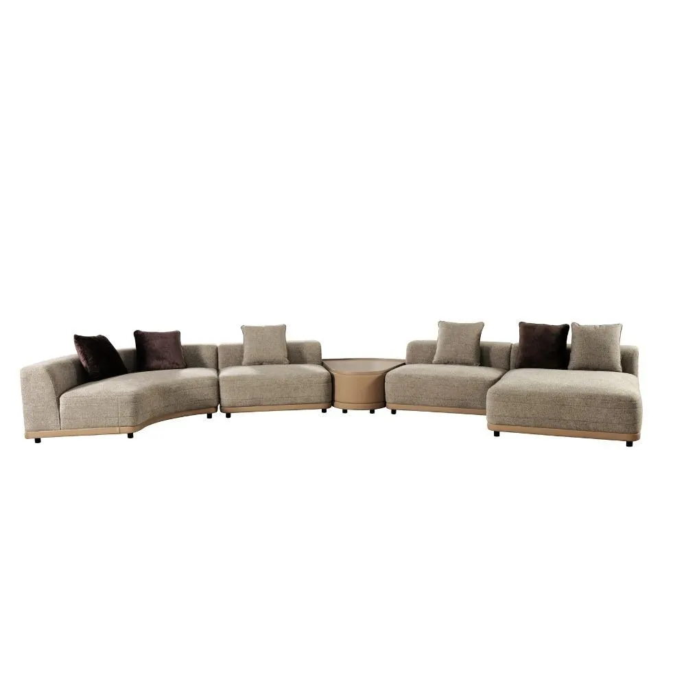 كنب زاوية مع طاولة فريدا 5 قطع - بيج وبني فاتح..تصميم عصري ومتين