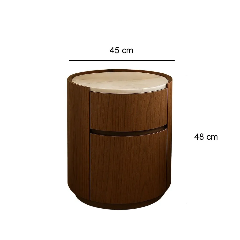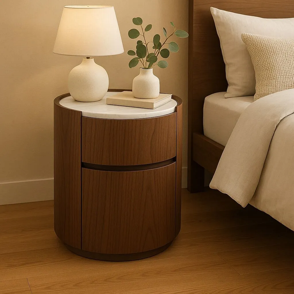 تناغم الخشب مع الرخام يجعله مثاليًا لغرف النوم ذات الطابع الهادئ أو الاسكندنافي.