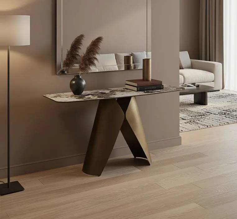 كونسول ناتالي بقياس 140 سم يجمع بين الأناقة العملية والفخامة العصرية. سطحه مصنوع من رخام صناعي فاخر يضفي لمسة راقية ومتينة في الوقت نفسه, الأرجل المعدنية بلون النحاس تمنح القطعة ثباتاً وأناقة مميزة.