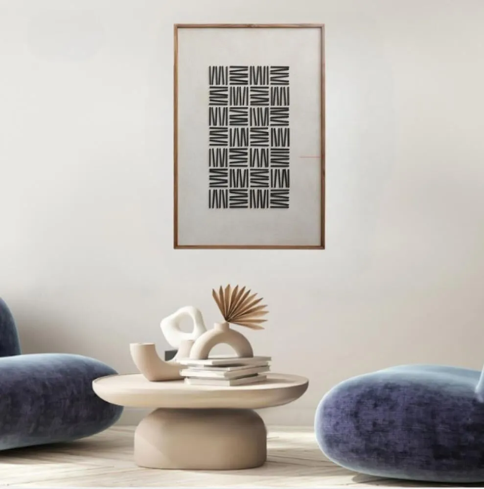 لوحة جدارية فنية معاصرة بتصميم تجريدي مميز، مصنوعة من أجود أنواع الخشب الطبيعي، مما يضفي عليها لمسة دافئة وعمقاً فريداً. تتميز اللوحة بتفاصيل مصممة بدقة عالية، حيث تتشكل قطع الخشب الصغيرة في أنماط متكررة ومتوازية تخلق إحساساً بالحركة والبعد البصري. يبرز جمال التصميم بإطار متين من الخشب الطبيعي، وتتوفر اللوحة بمقاس 120*80 سم، مما يجعلها قطعة فنية آسرة ومثالية لإضفاء طابع شخصي وأنيق على أي مساحة داخلية.