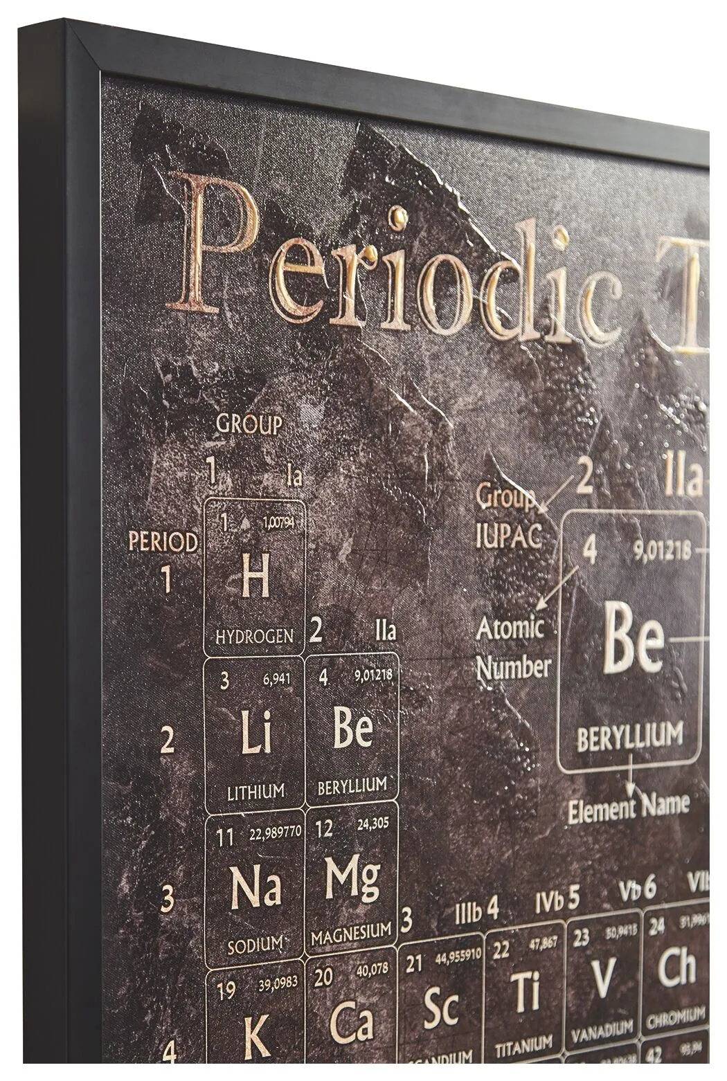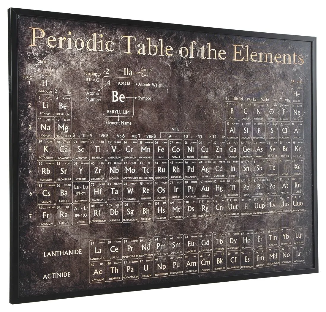 لوحة جدارية مارجا هذا العمل الفني باللونين الأسود والأبيض هو الصيغة الصحيحة لإظهار حسك الرائع بالأناقة. يتميز قماش المعرض الملفوف للجدول الدوري بتزيين يدوي لإطلالة أصيلة.