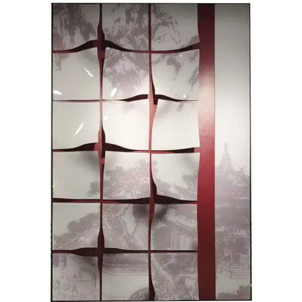 ألواح MDF التي توفر استقرارًا ودعماً قوياً للهيكل، مع سبائك الألومنيوم التي تضيف لمسة من الأناقة والمتانة. كما تم استخدام الأكريليك المُشكل حرارياً لإضافة تأثيرات بصرية مميزة، بالإضافة إلى الجلد الذي يضفي لمسة فاخرة وأنيقة للوحة.التصميم المتموج: