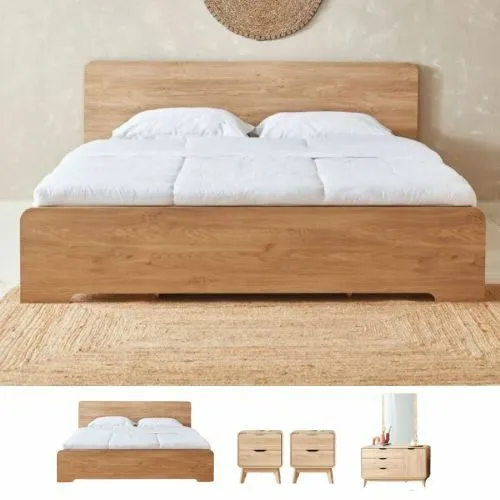 تتميز هذه المجموعة الأنيقة والمريحة بمجموعة كاملة من الأثاث اللازم لغرفة النوم، بما في ذلك سرير مريح، وطاولة جانبية عملية، وطاولة زينة فاخرة.