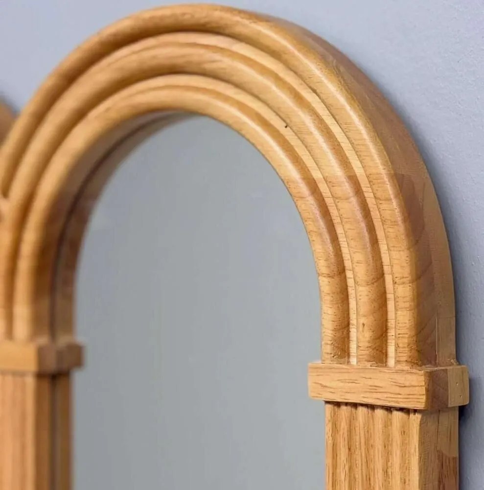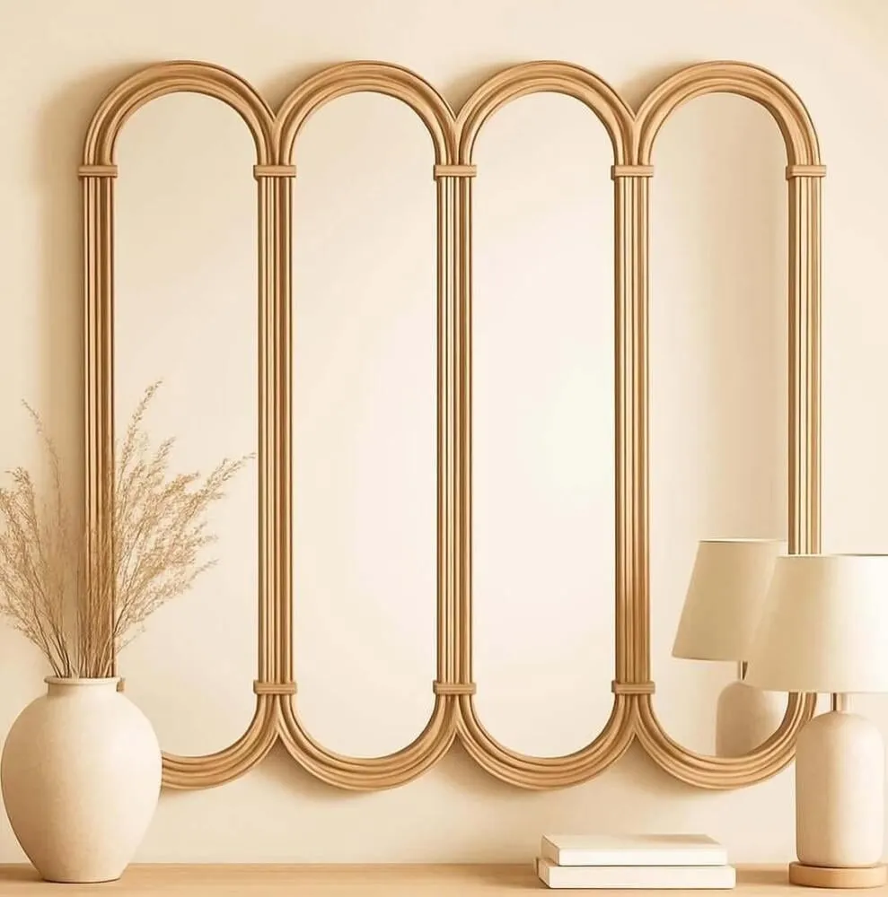 لمسة فنية بطابع ريفي عصري حوّل أي زاوية في منزلك إلى مساحة أنيقة ومشرقة مع مرآة ميرو الخشبية ذات التصميم الفريد والمقوّس. هذه المرآة ليست مجرد قطعة وظيفية، بل هي عنصر ديكوري يلفت الأنظار ويعزز من جمالية المكان. تصميمها المستوحى من الأقواس الناعمة يضيف لمسة هادئة ومتناغمة تنسجم مع مختلف أنماط الديكور سواء البوهيمي، الريفي أو المودرن. إطار خشبي طبيعي بلون رملي دافئ يمنحك إحساسًا بالدفء والراحة مثالية للمداخل، غرف النوم، الصالات أو زوايا التصوير تضيف عمقًا بصريًا وتساعد على توسيع المساحة بصريًا تصميم مقسم إلى أربعة أقواس يمنحها طابعًا هندسيًا أنيقًا سواء كنت تبحث عن قطعة ديكور فريدة، أو طريقة لتجديد روح منزلك، فإن ميرو هي الخيار الأمثل لمن يعشق التفاصيل الخشبية الدافئة واللمسات الفنية المبهرة.