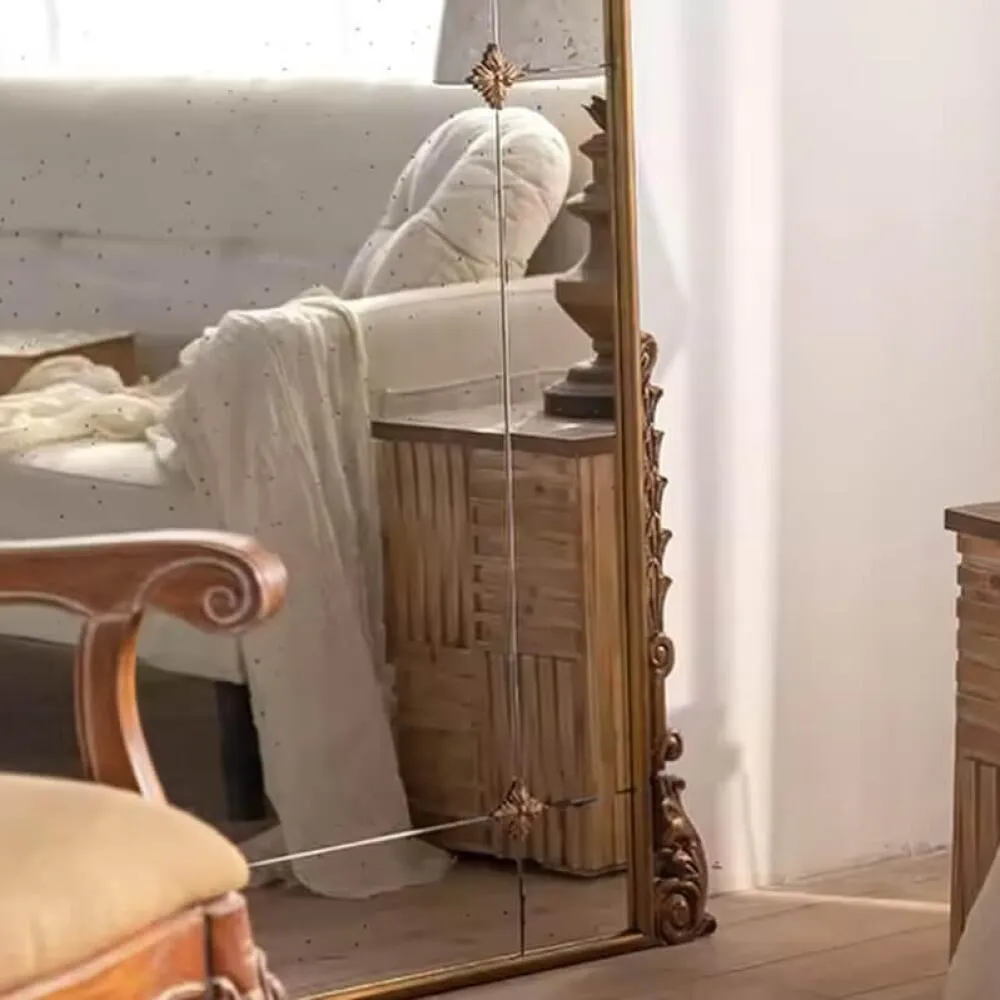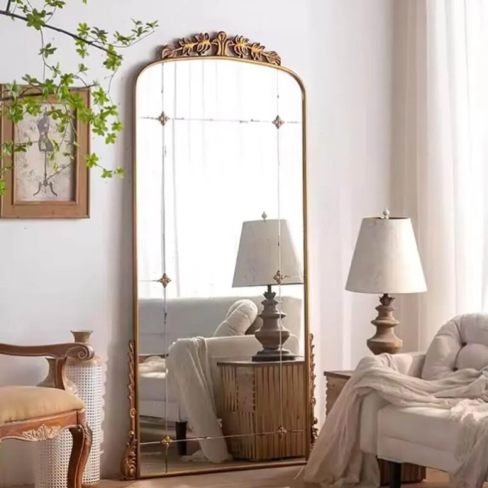 أضف لمسة من الفخامة إلى منزلك مع المرآه الأرضية الطويلة دانيال بإطارها الذهبي