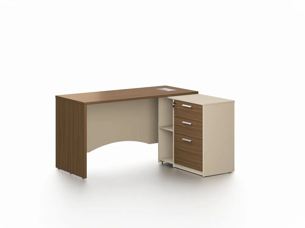وحدات تخزين مرنة: يضم درجًا مزودًا بقفل ومقبض من الألمنيوم، بالإضافة إلى رفوف جانبية لتخزين الملفات والمستلزمات الأخرى. منزلقات الأدراج ثلاثية التحمل تضمن حركة سلسة ومريحة.
