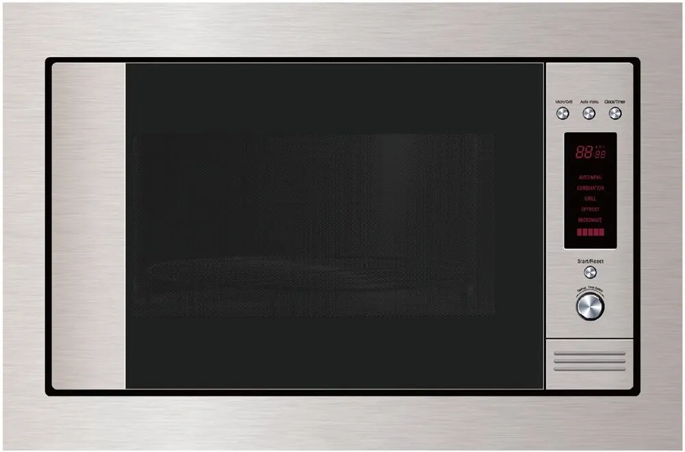 الإطار والتجويف الداخلي من الستانلس ستيل مع زجاج أسود - تحكم الكتروني مع شاشة عرض بيانات - 6 برامج مخزنة لسهولة الاستخدام - 2 في 1 ( ميكروّيف - شواية ) - مؤقت طهي 60 دقيقة - خاصية فك التجميد .