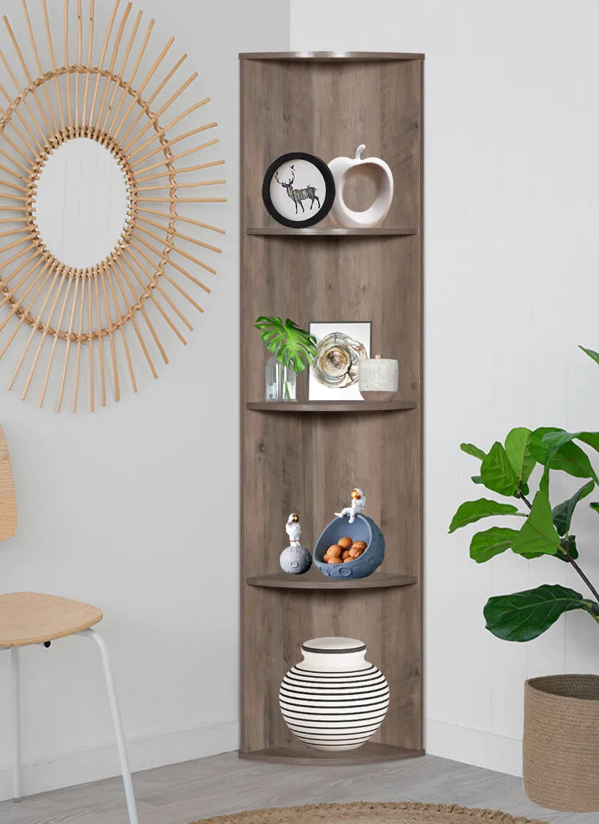 وحدة تخزين رفوف زاوية مقوسة - 4 رفوف خشب ماليزي - رمادي مائل للبني