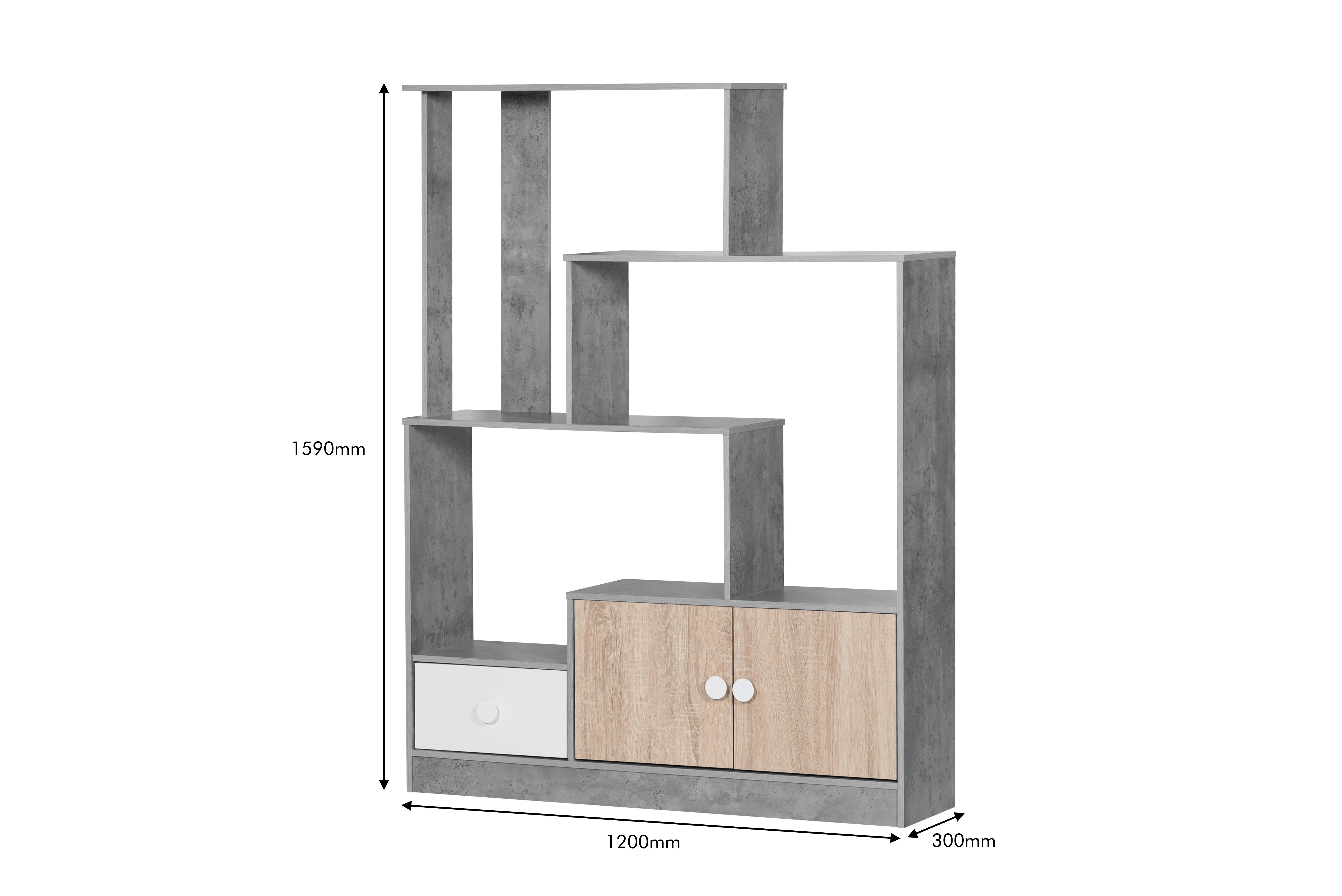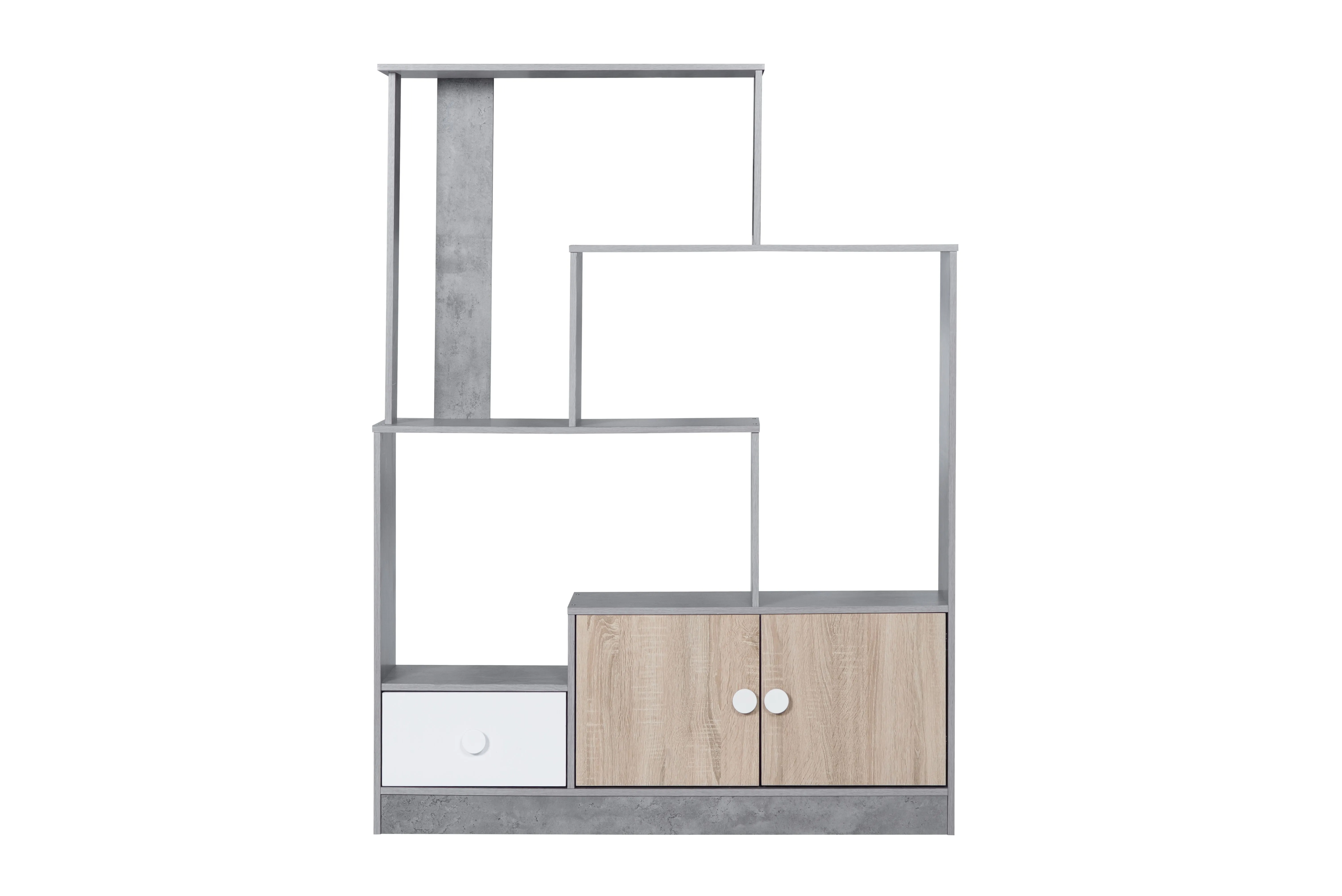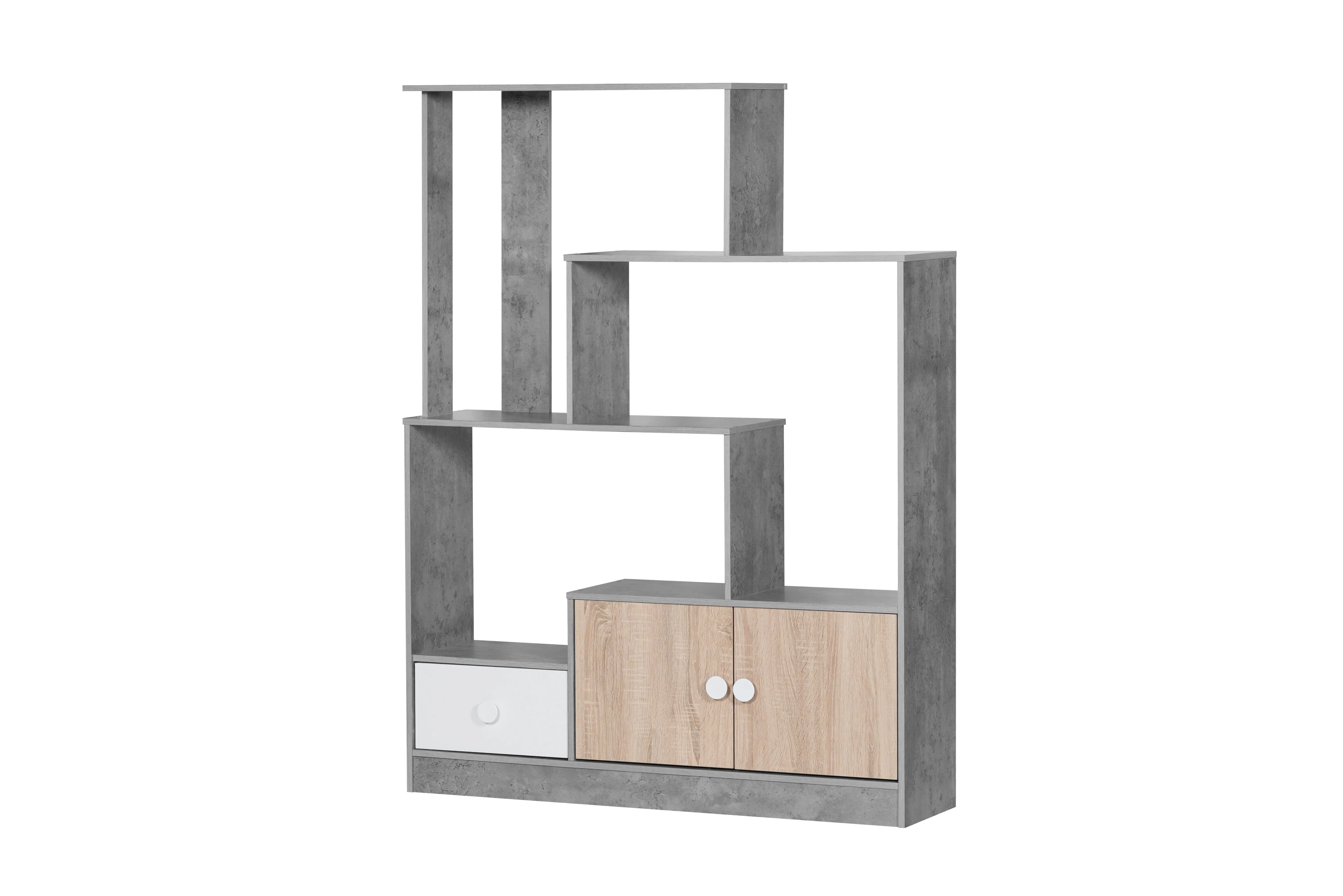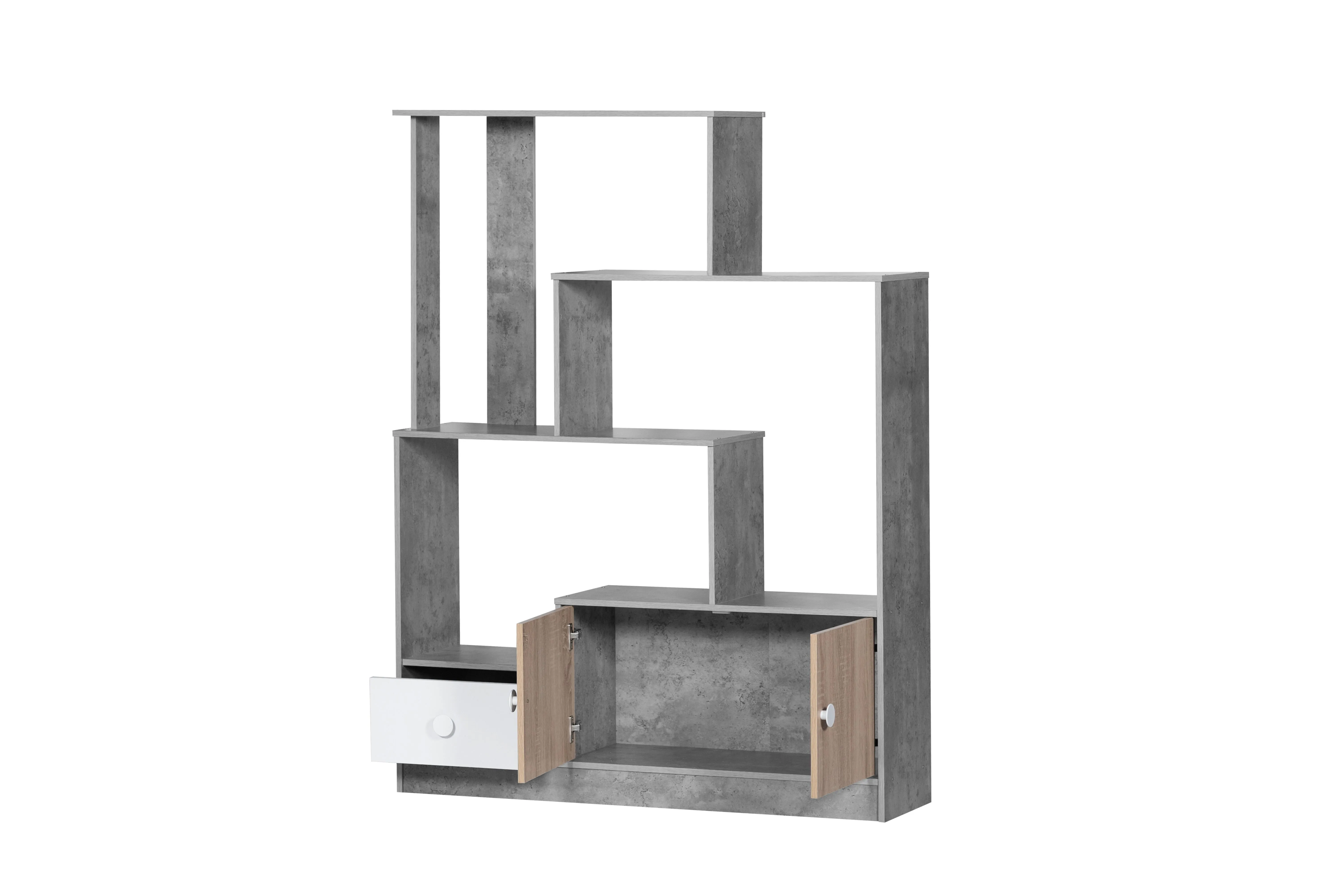وحدة تخزين مدخل رفوف وأدراج كتب بوناي رمادي ومتعدد الالوان