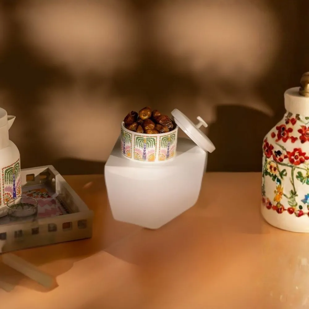 أنت تراجع:وعاء تقديم تمر مع غطاء من رتيلة - ابيض ومتعدد الالوان