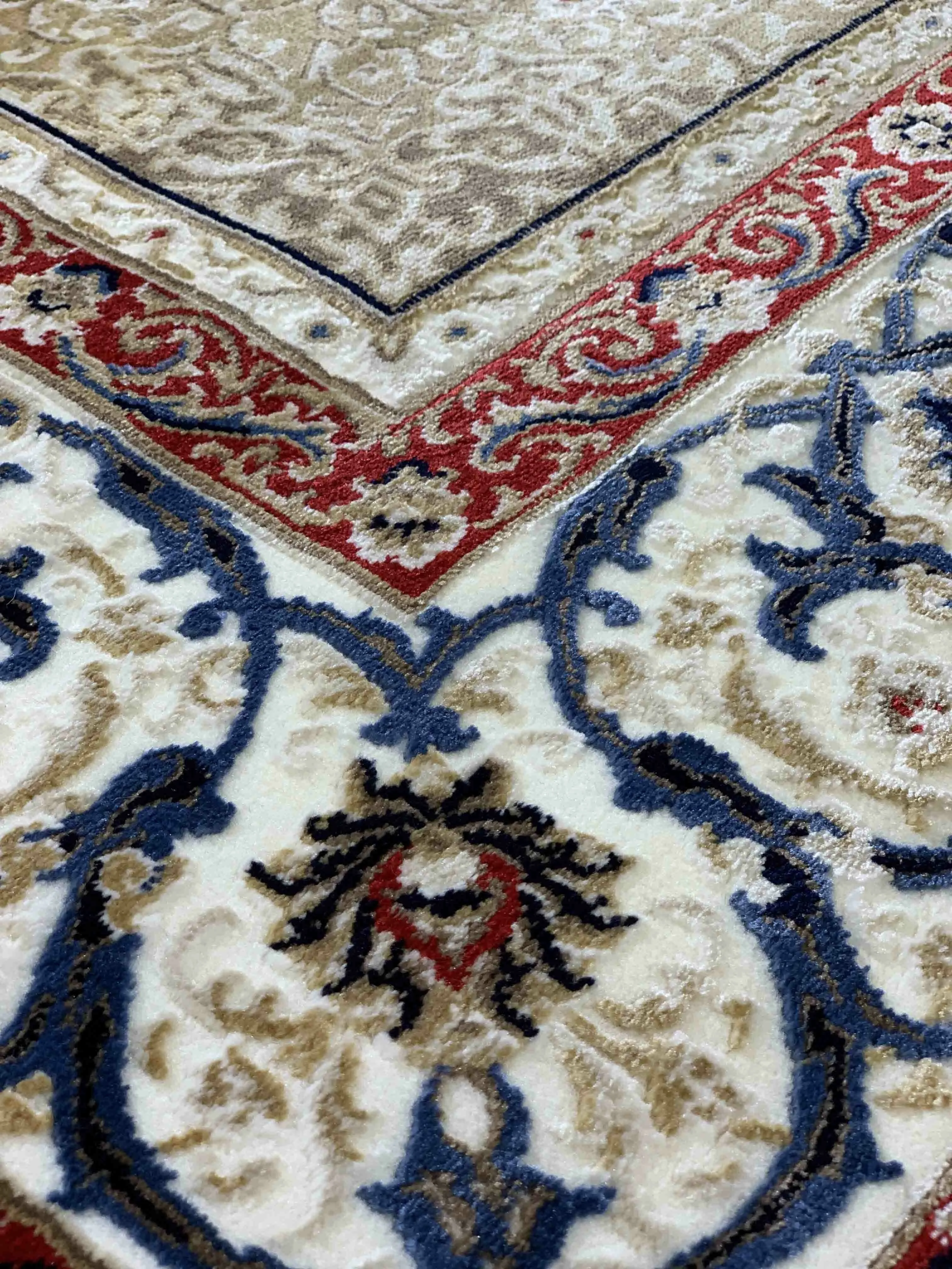 إرشادات العناية والتنظيف يجب ألا يتم تعريضها لأشعة الشمس أو الرطوبة تستعمل بدون طيها يوصى بالتنظيف المتكرر للسجادة بالمكنسة الكهربائية وتُنظف السجادة أو تُنفض بشكل دائم حتى تمنع الغبار والفتات من الاستقرار على السجادة. تٌحفظ بعيداً عن الأماكن شديدة الرطوبة و في حالة إتساخ السجادة تُنظف البقع بقطعة قماش بيضاء على الفور. يُوصى بغسيل محترف للسجادة إذا اقتضت الحاجة و تجنب استخدام المنظفات الكيميائية الحادة حتى لا تتلف السجادة ويُبهت ألوانها. للاستخدام داخل المنزل فقط.