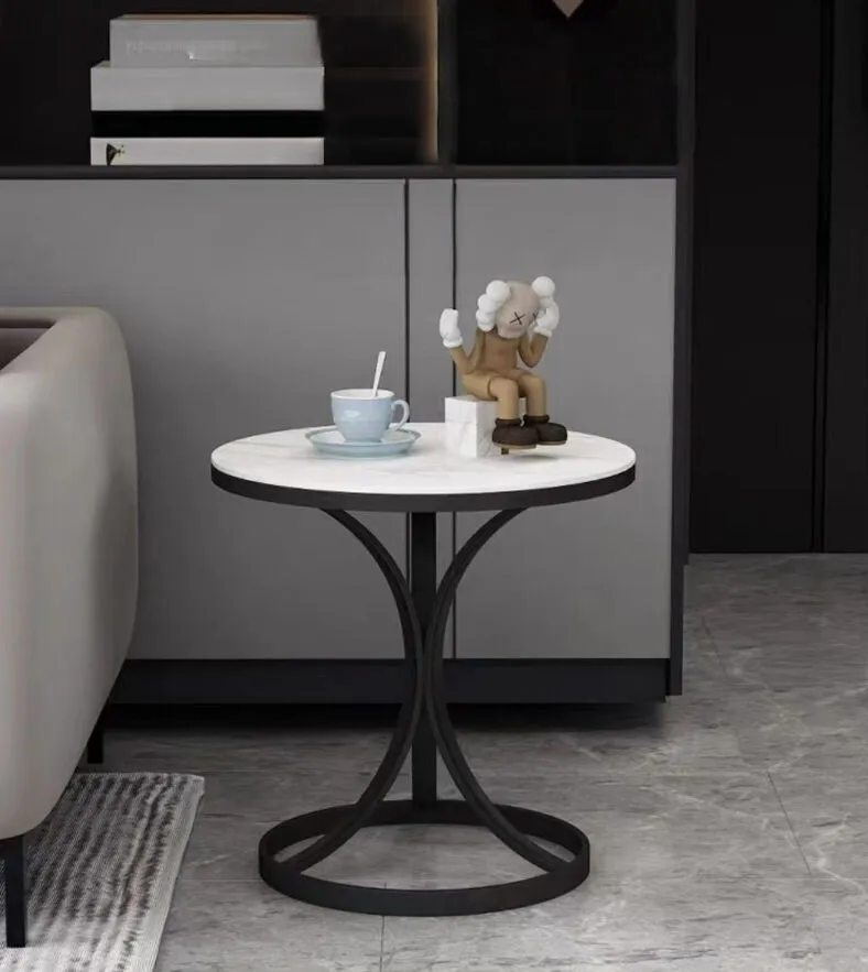 طاولة جانبية مودرن كاتاليا - أسود وأبيض رخامي